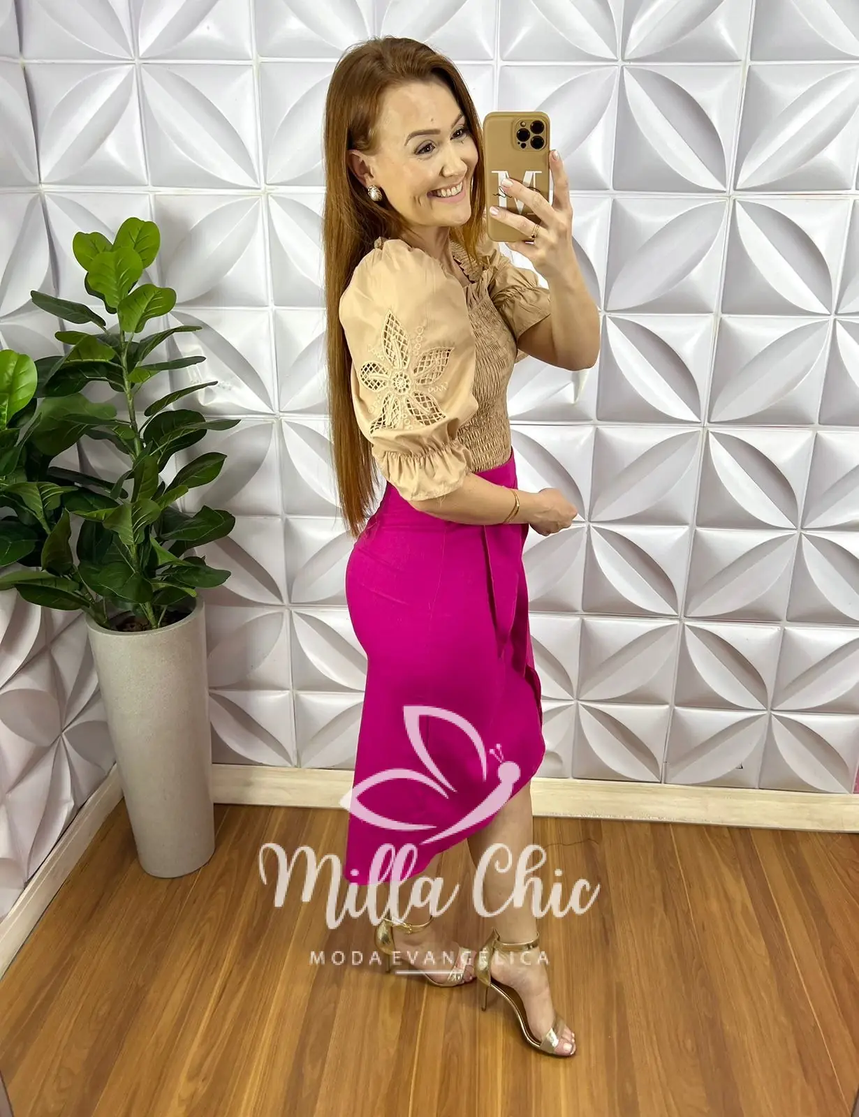 saia que está de arrasar irmãzonas! Toda no tecido linho bem elegante vestindo super bem!