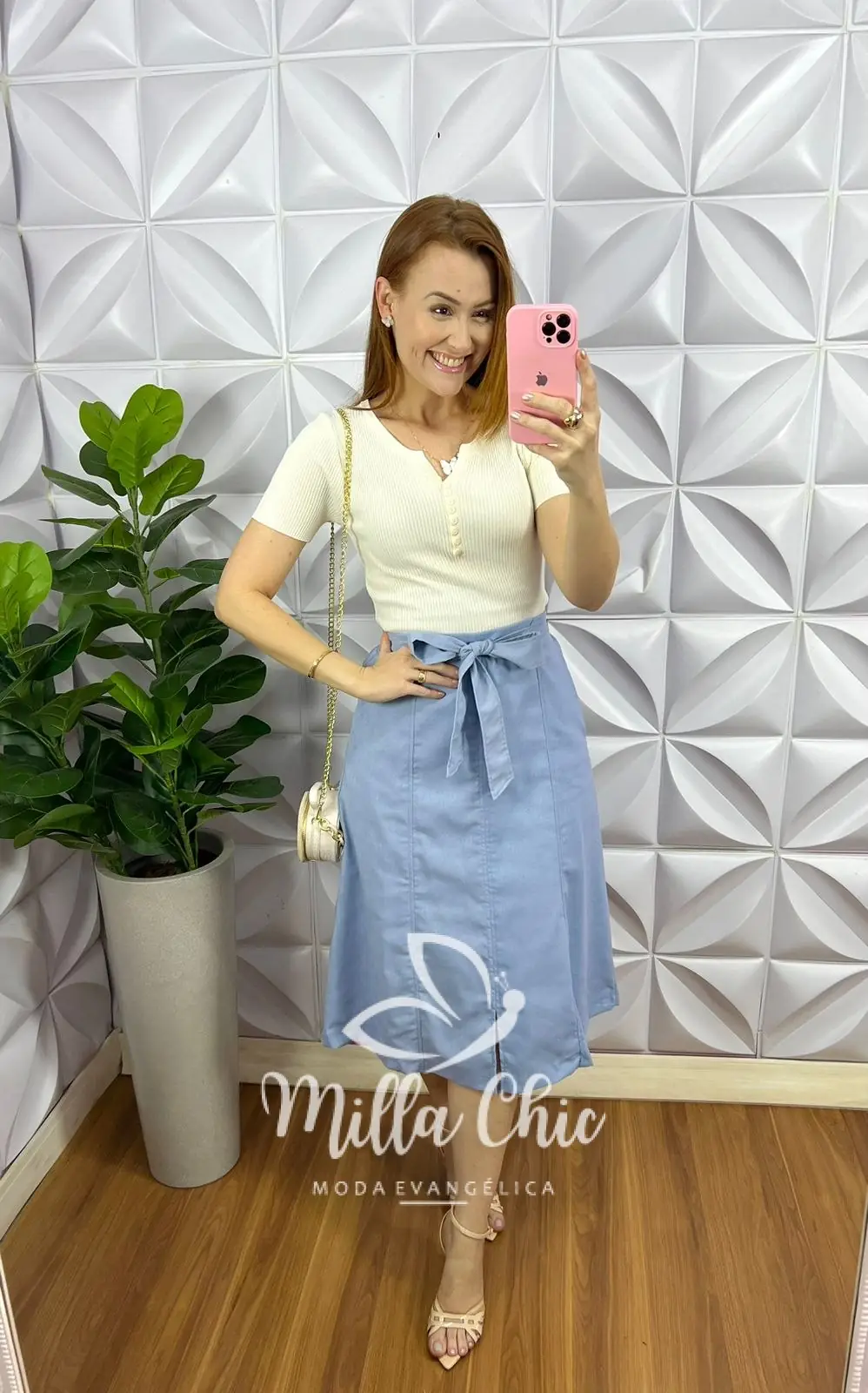 Saia no linho tecido super elegante e delicado! nessa modelagem incrível vestindo super bem!