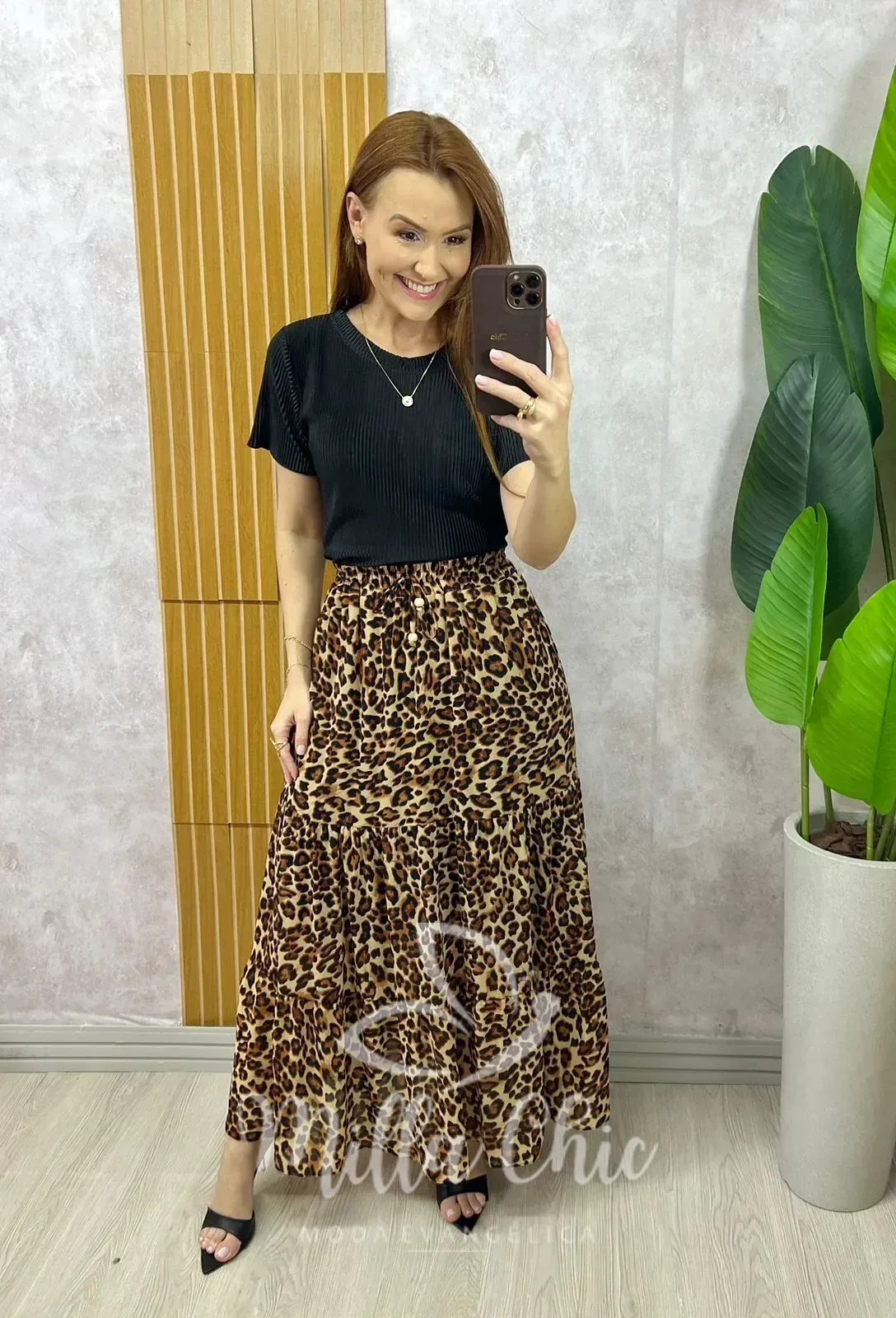 Essa é a sua saia Amélia é toda confeccionada em chiffon que é um tecido fresco e com um caimento maravilhoso . Sabe aquela saia para looks casuais e elegantes . É essa ! Super versátil que vai do tênis a sandália sem perder a elegância, Ela traz uma modernidade quando você veste, além de trazer muito conforto.