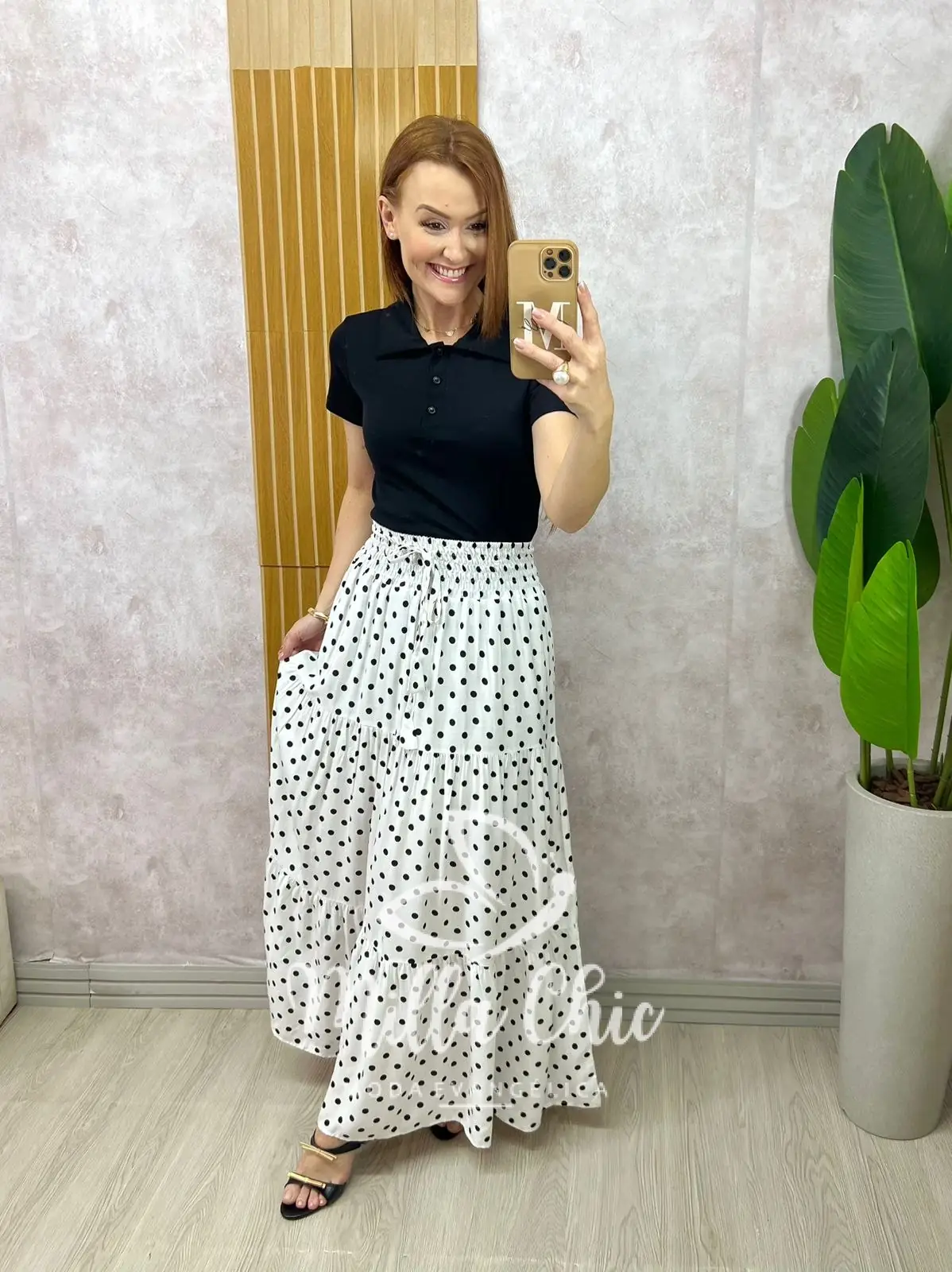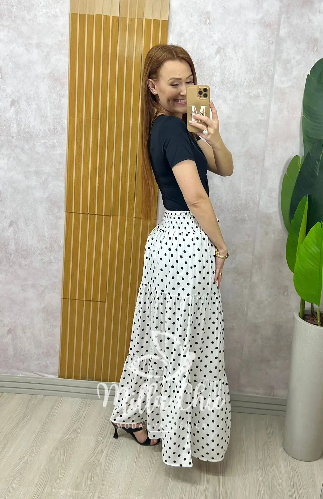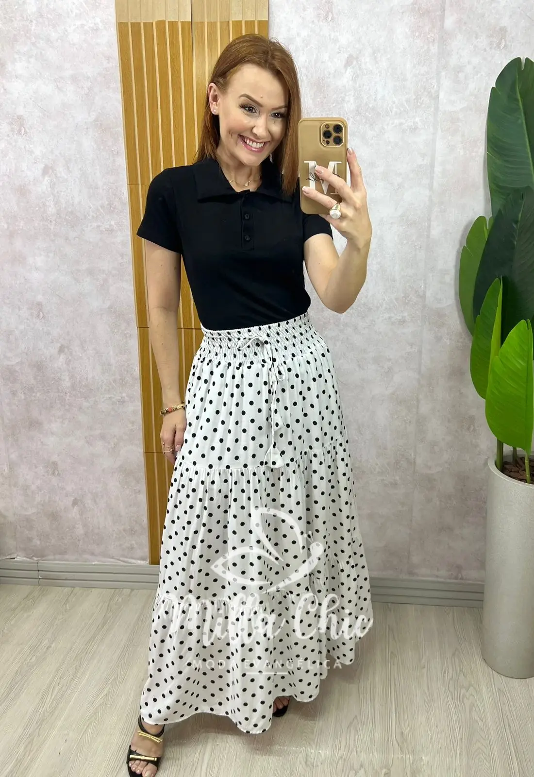 Saia longa Amélia em viscolinho - Branca em póa - Milla Chic