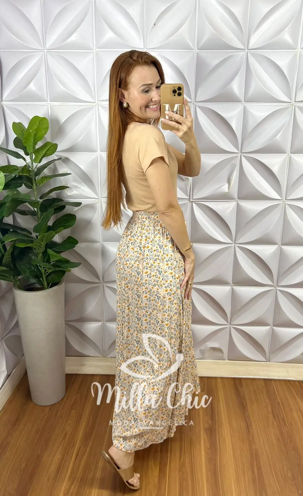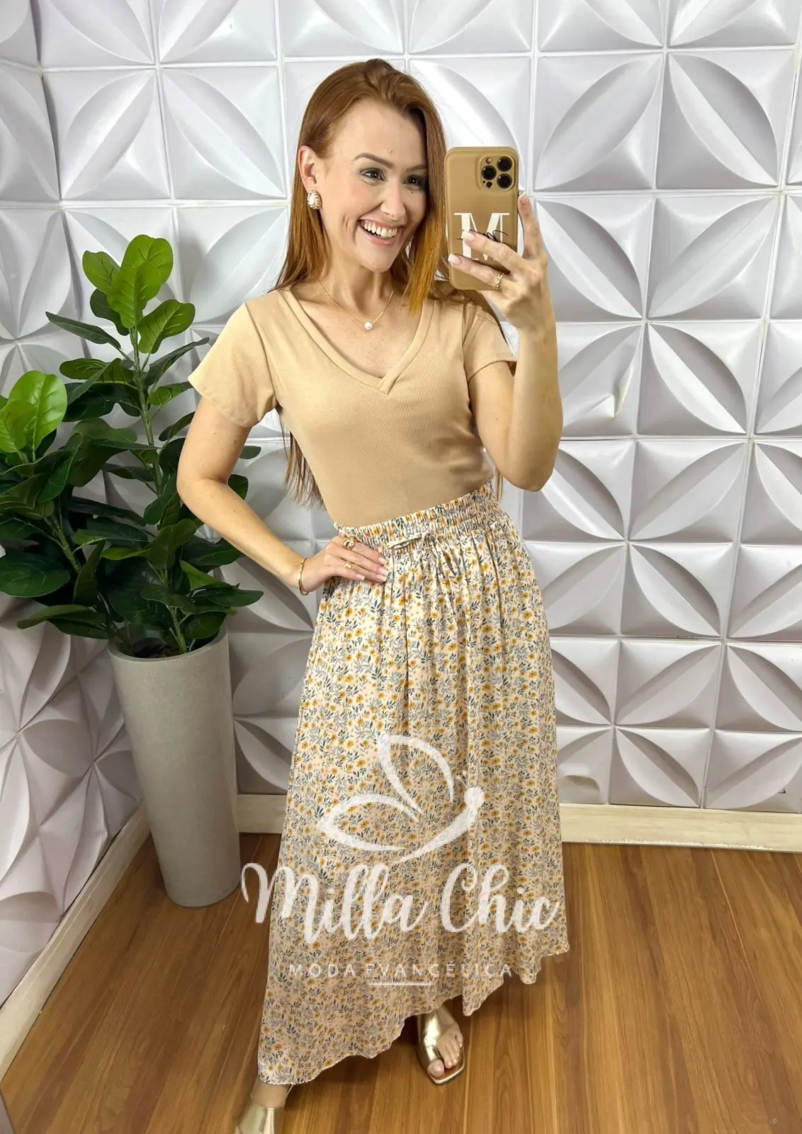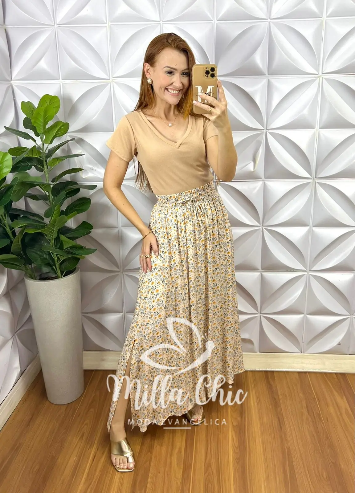 Saia Longa Hortênsia Em Viscolinho - Milla Chic
