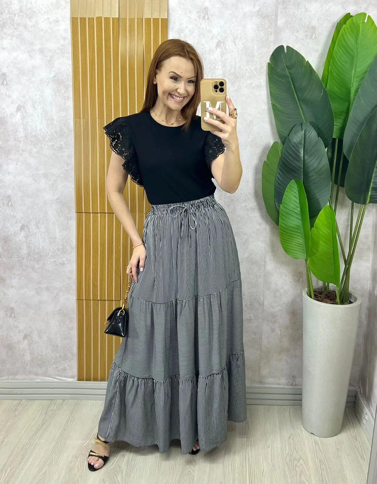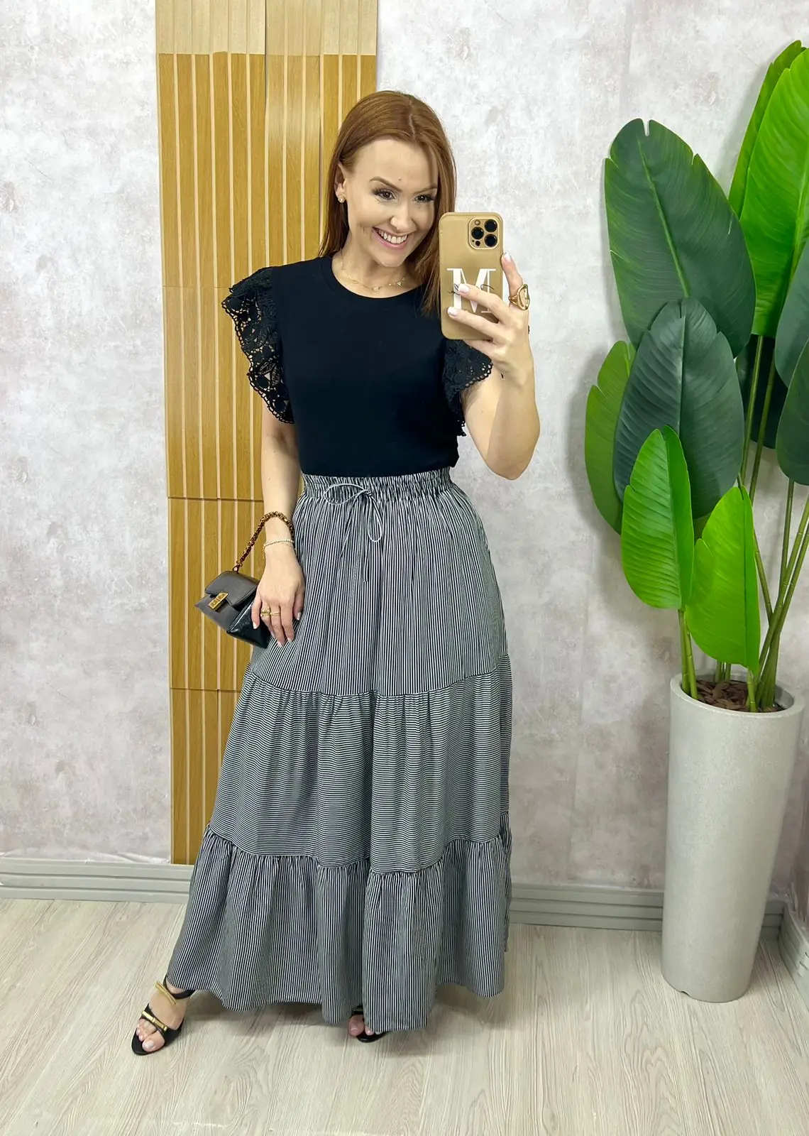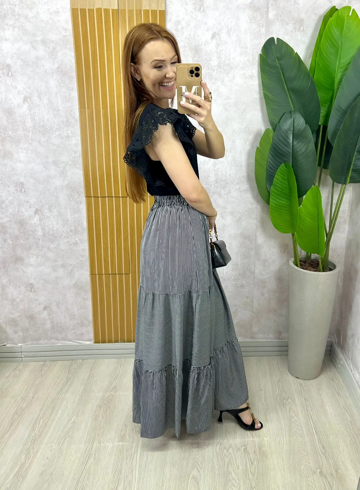 Saia longa Tiffany. Aquela saia confortável chic de arrasar e atemporal.