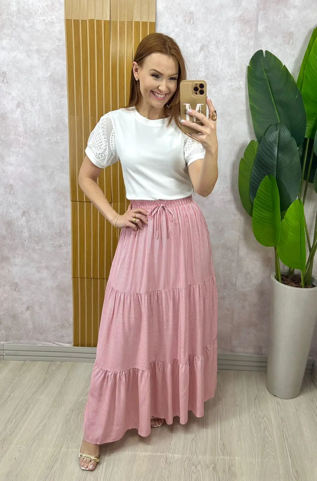 Saia Longa Tiffany em Viscolinho – Rosé