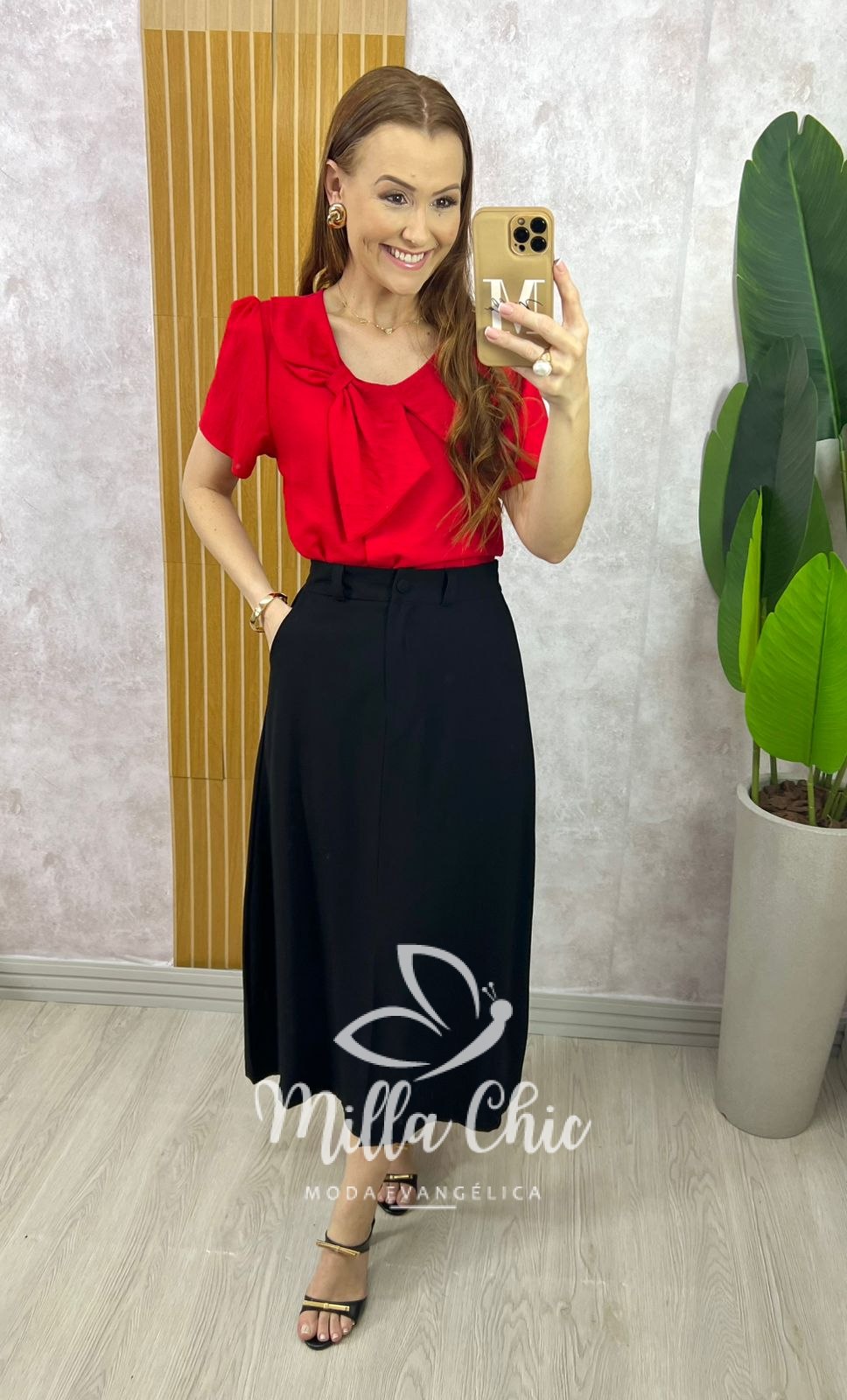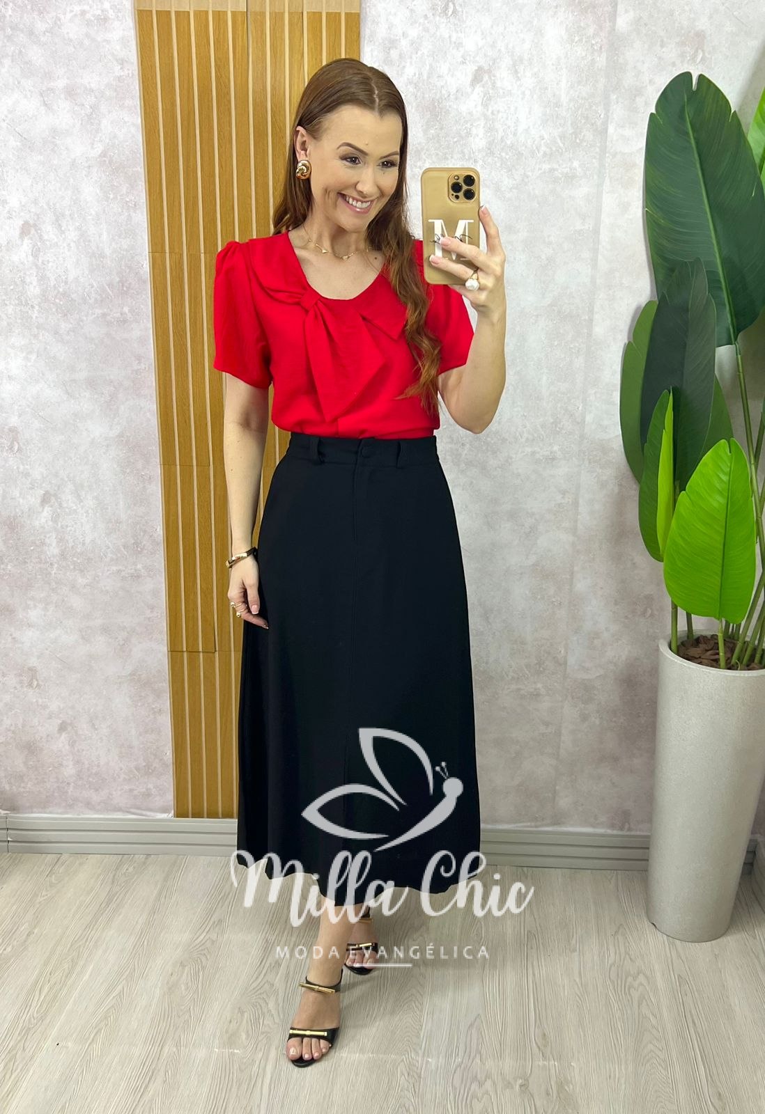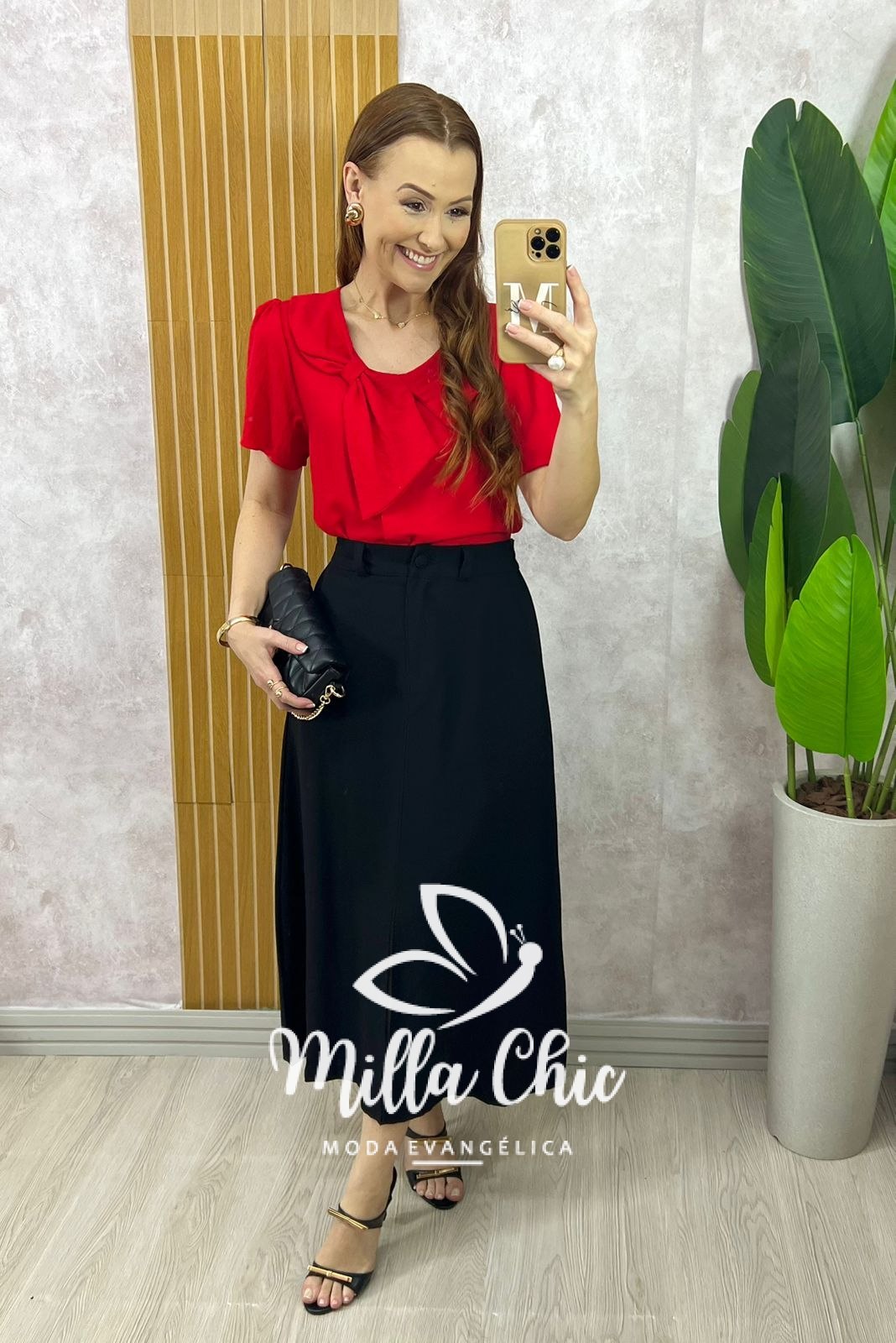 A saia Lúcia é perfeita para deixar o seu visual cheio de glamour! Presente desde os anos 50, ela se tornou uma peça fundamental de qualquer mulher. Na cor preta e na cor natural aquela saia alfaiataria indispensável em nosso guardas roupa. Com ela, minhas irmãs podem fazer sobreposições deslumbrantes com camisas, bodys e casaquetos, componha com um belo salto para valorizar ainda mais o visual. No comprimento midi, ela é toda confeccionada no tecido de Alfaiataria Premium Encorpado {tecido confortável com textura de sarja e com caimento maravilhoso } e possui: cós alto c, zíper frontal e botão encapado.