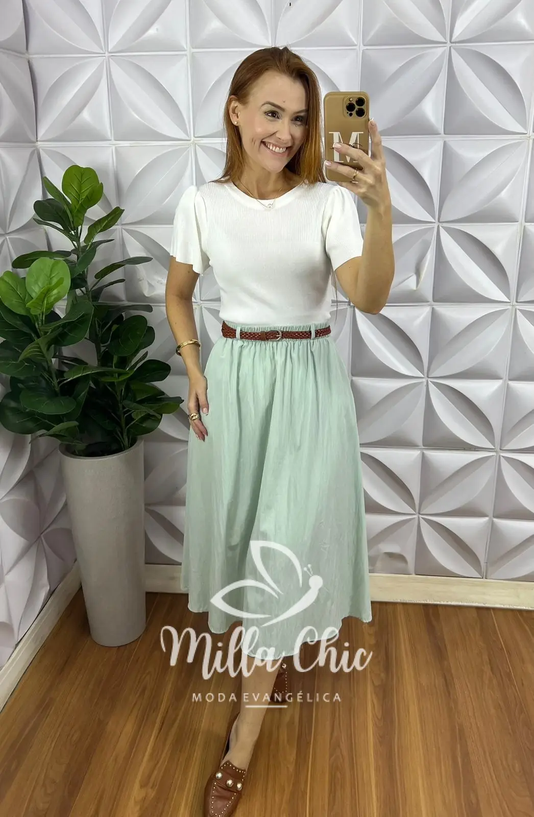 Sabe aquela saia que combina com tudo . Fica linda com qualquer tipo de camisa ou blusa . Acompanha o cinto .