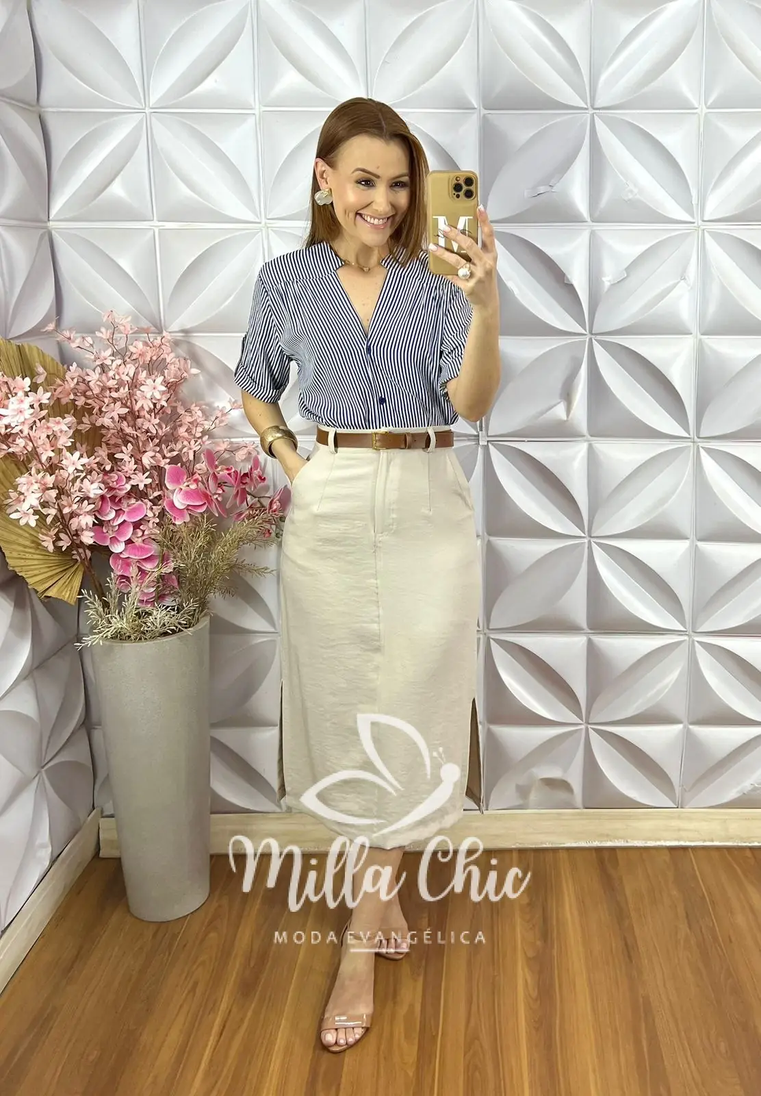 Com a cintura alta e bem marcada deixando minhas irmãs lindas e elegantes.