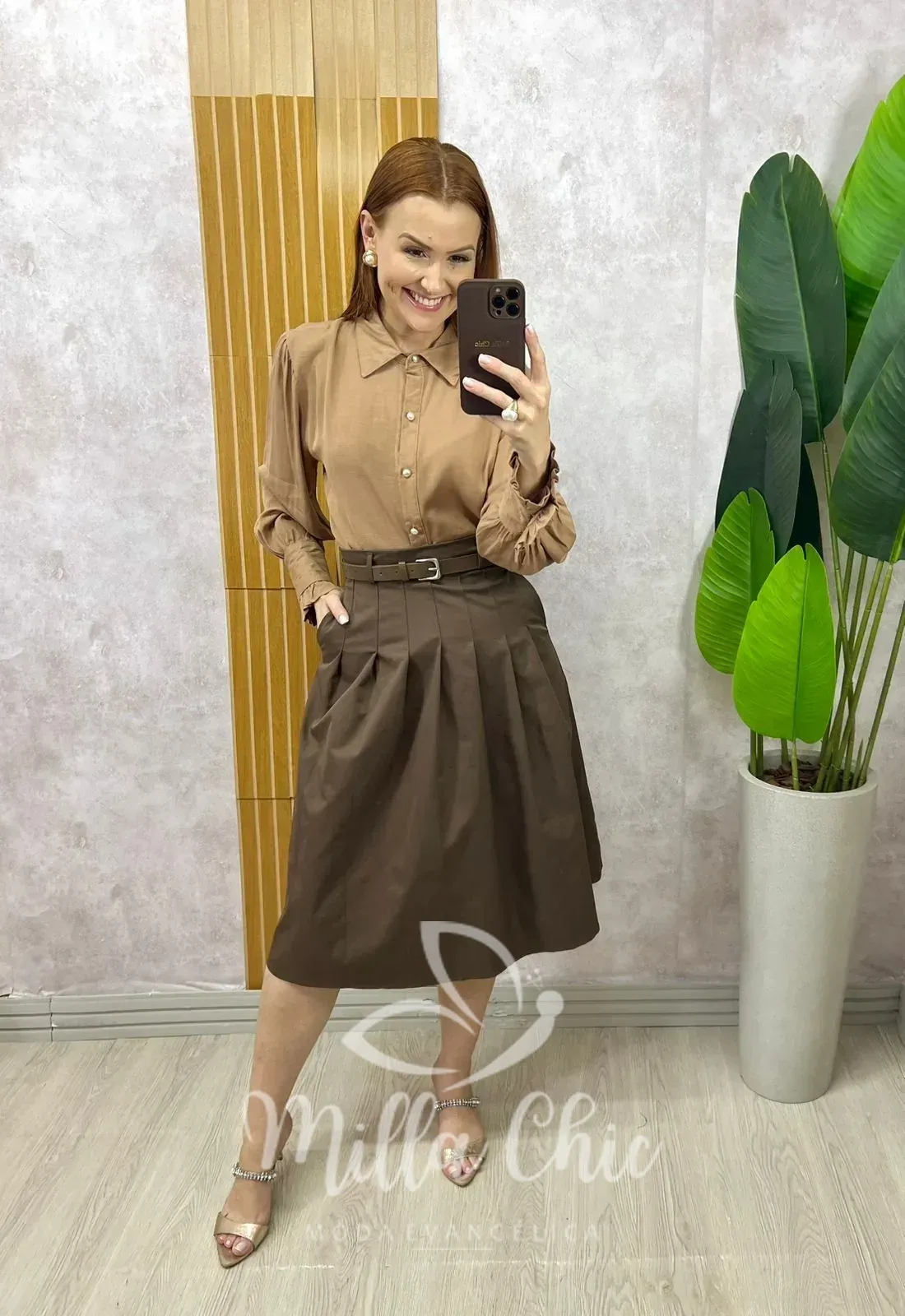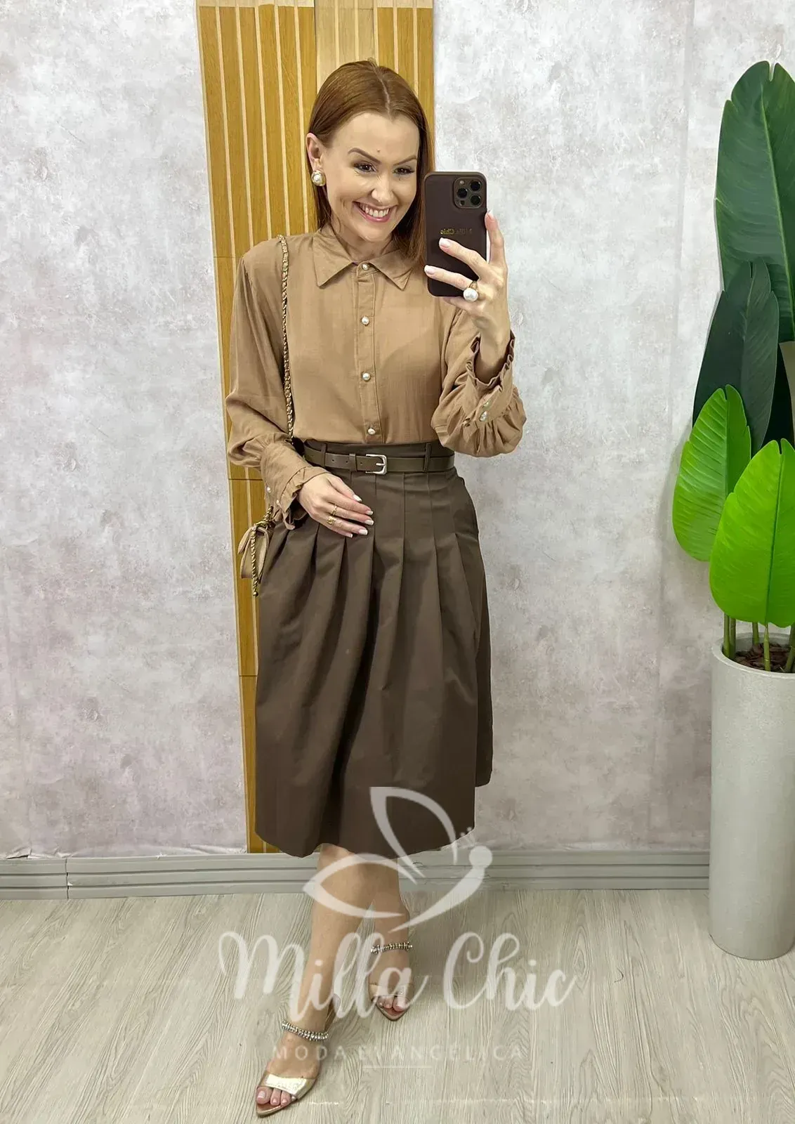Saia Maria Olívia Em Alfaiataria – Castanho