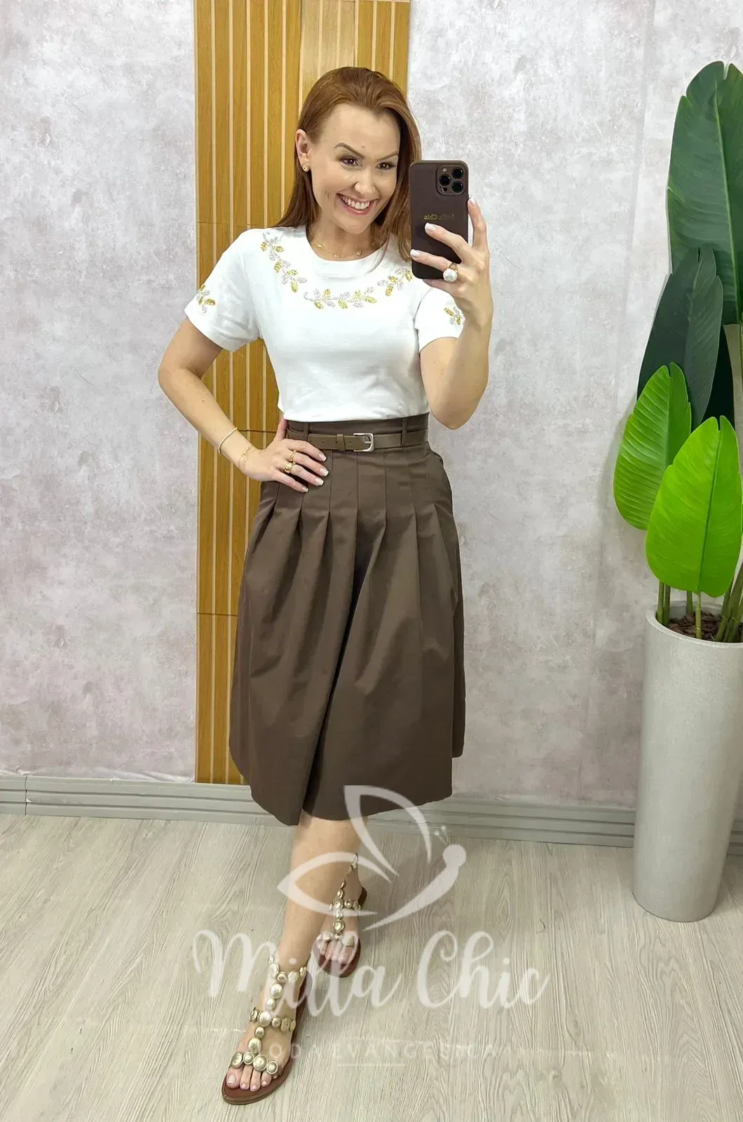 A saia Maria Olívia é aquela saia que minhas irmãs tem que ter no guarda roupas. Vai te deixar linda , chic e muito elegante .