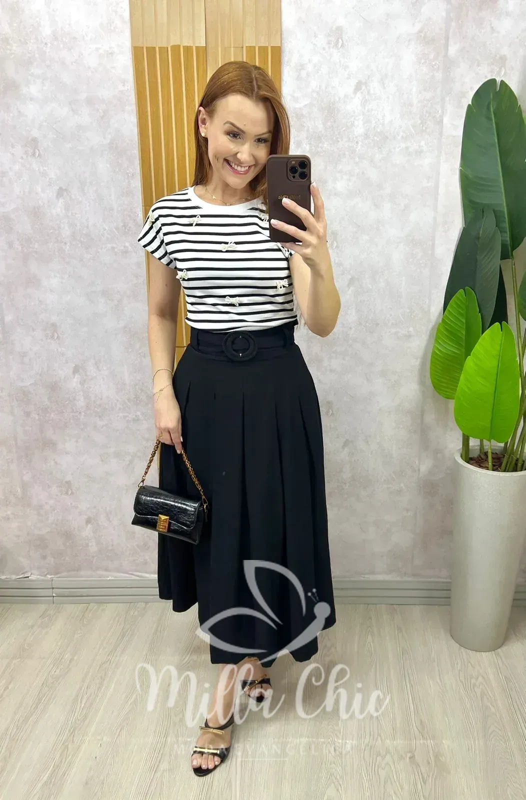 Com T-shirt ou uma camisa essa saia vai te deixar muito chic lindona .