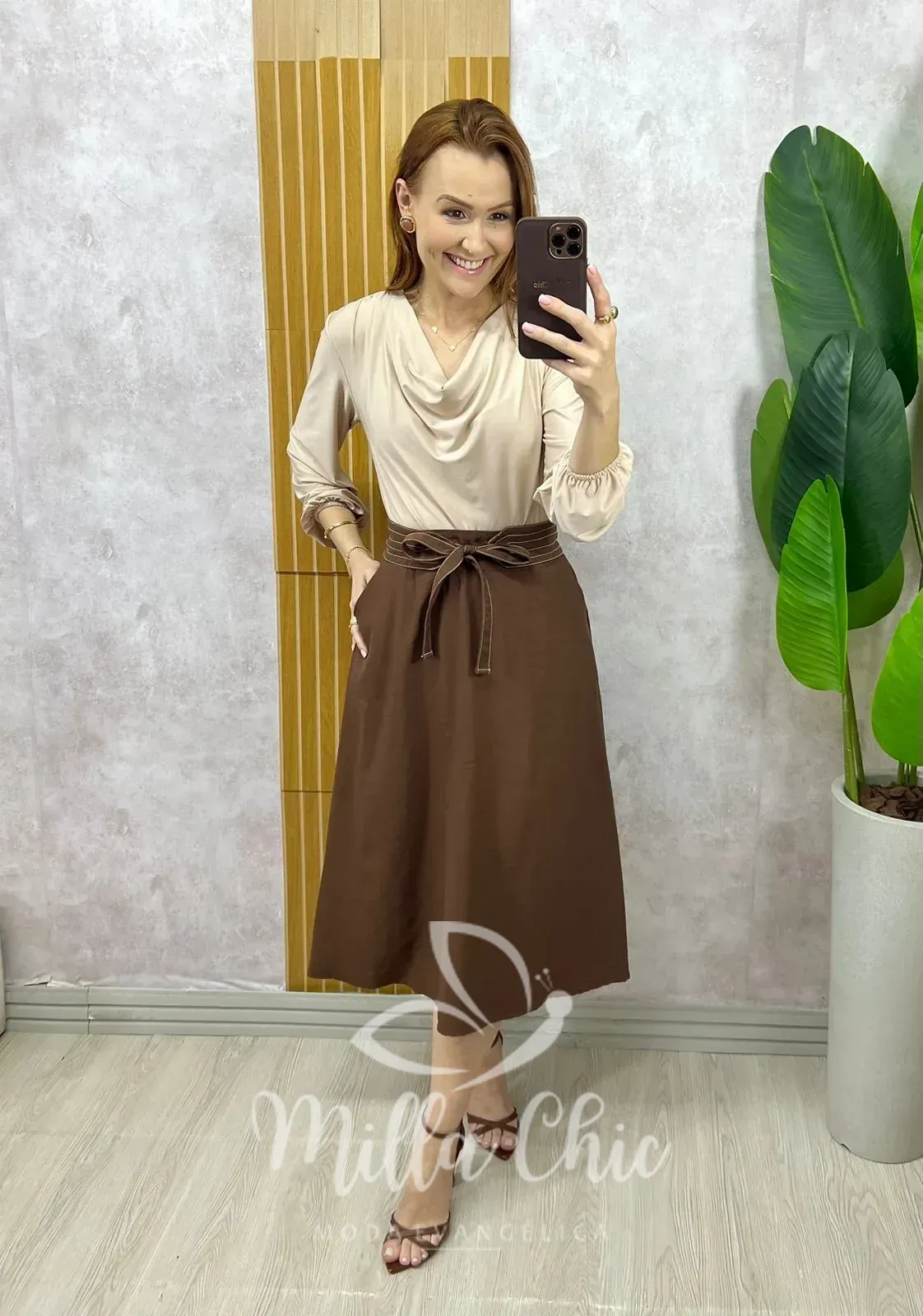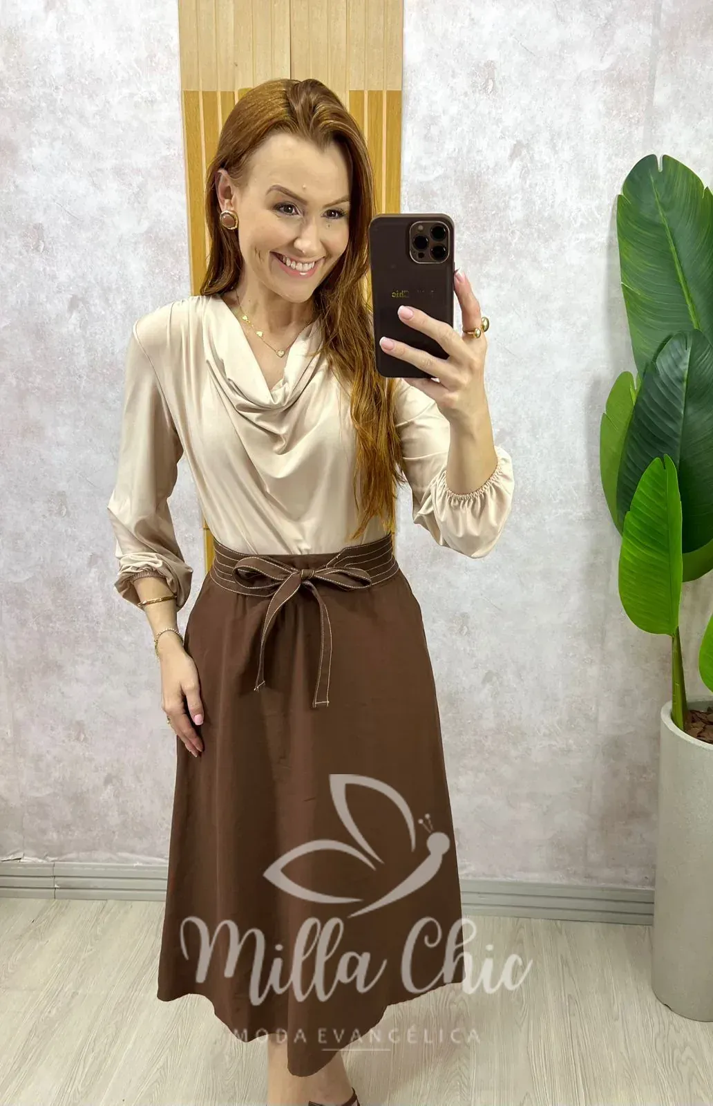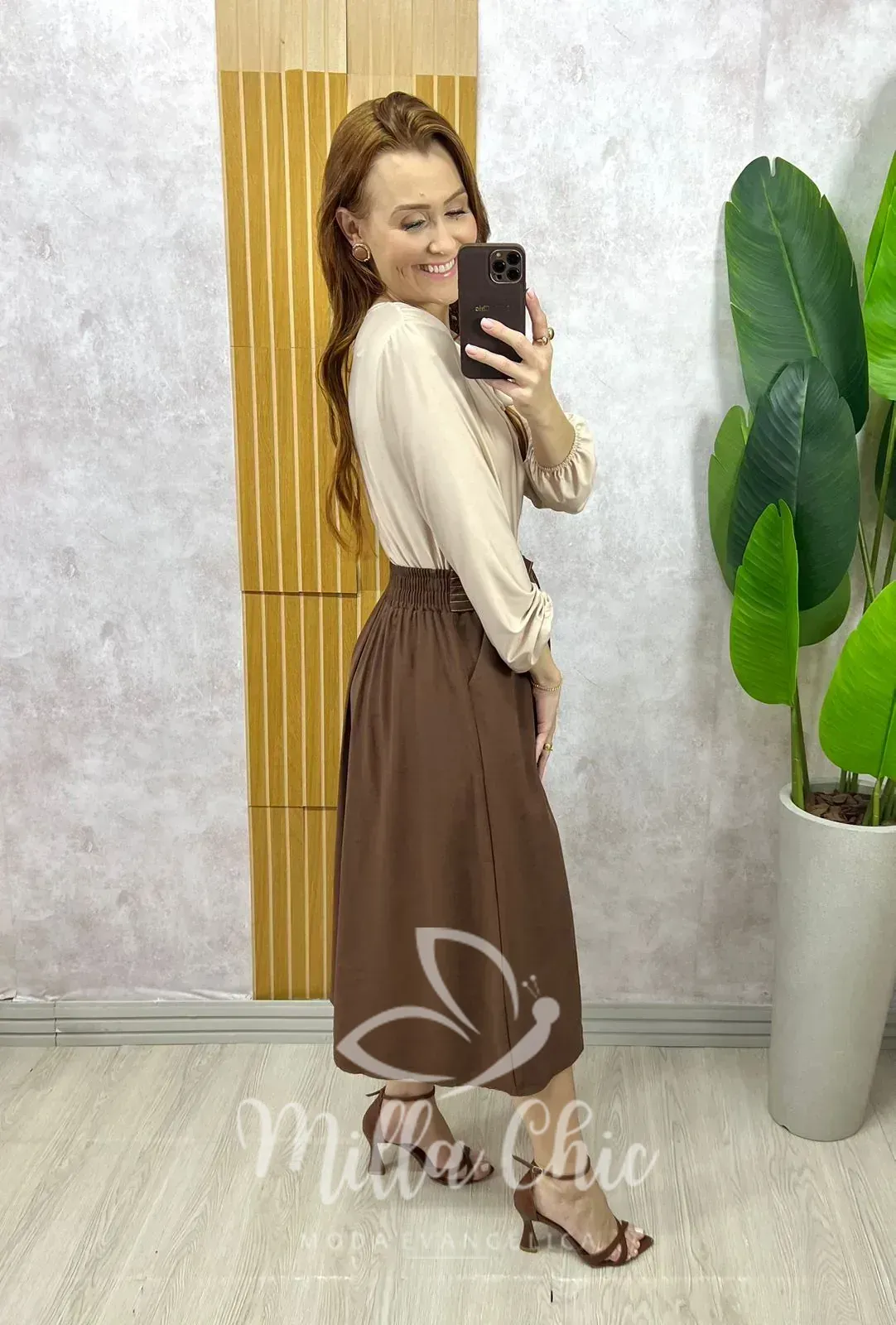 Saia Minerva  é aquela saia clássica que deixa minhas irmãs se sentindo maravilhosas elegantes. Veste bem demais.