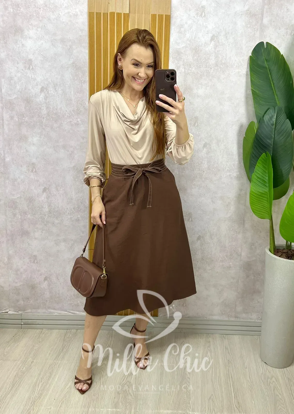 Saia Minerva em alfaiataria – Marrom