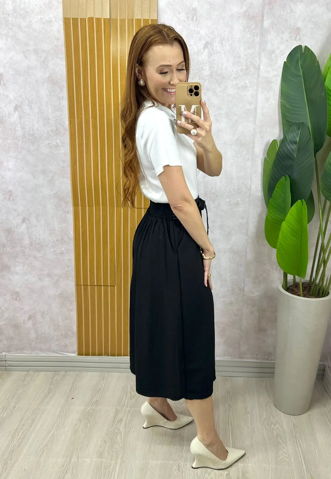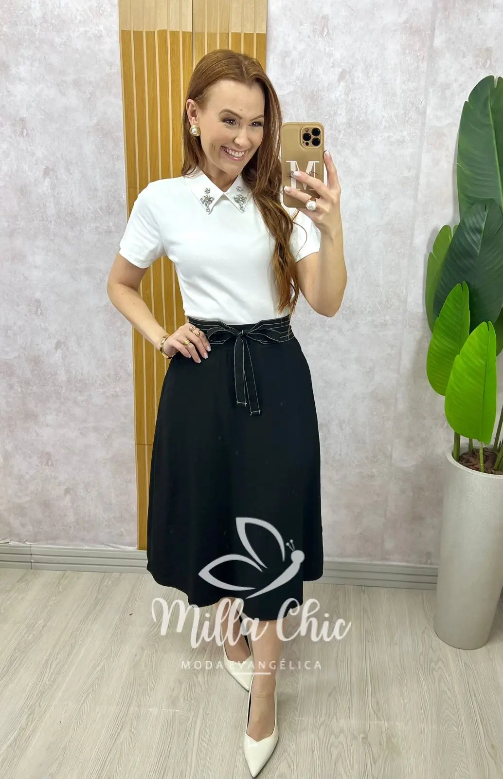 Minhas irmãs vão amá-la e vão arrasar de chic lindonas. O diferencial que deixa minhas irmãs lindas e elegantes com ela é o cinto costurado na lateral que, além, de acinturar é todo prespontado em branco . O toque de elegância para essa saia .