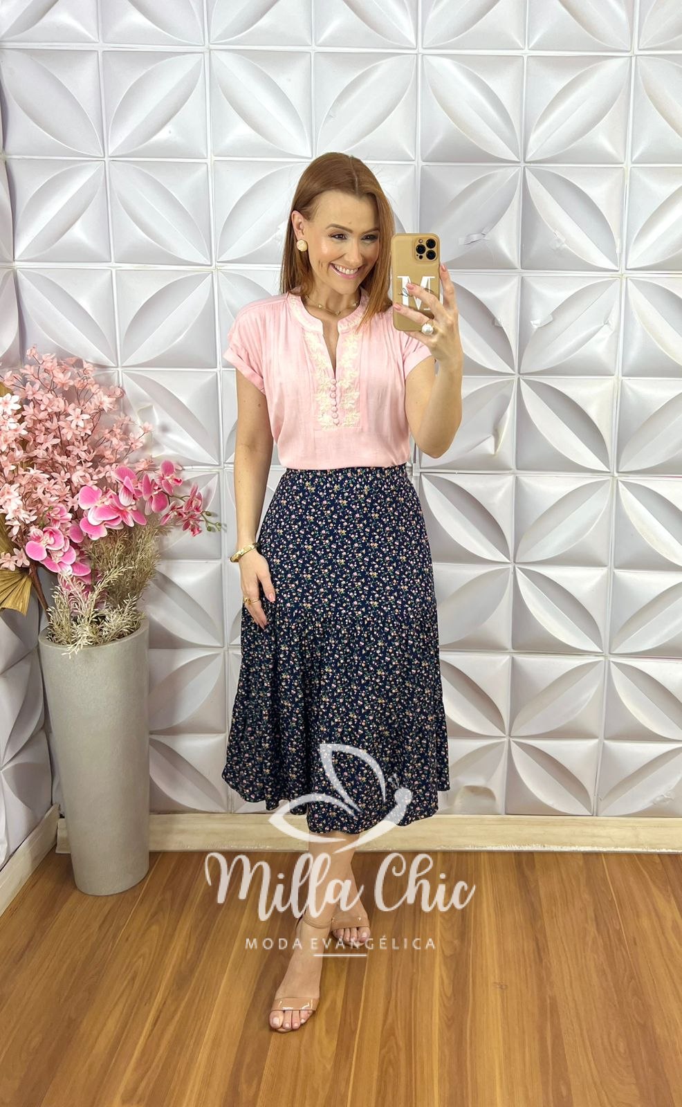 Toda confeccionada em viscolinho. Muito fresca e confortável. Uma saia que te deixa moderna e elegante. Modelagem justa no quadril e solta nas saia. Fluida com as marias nas saias.