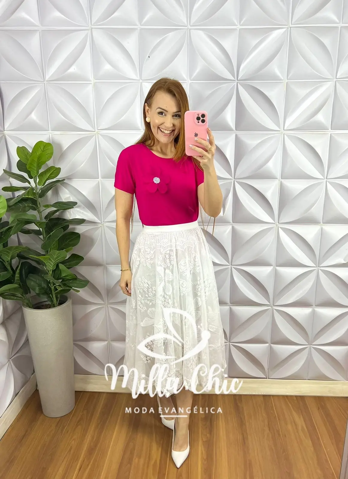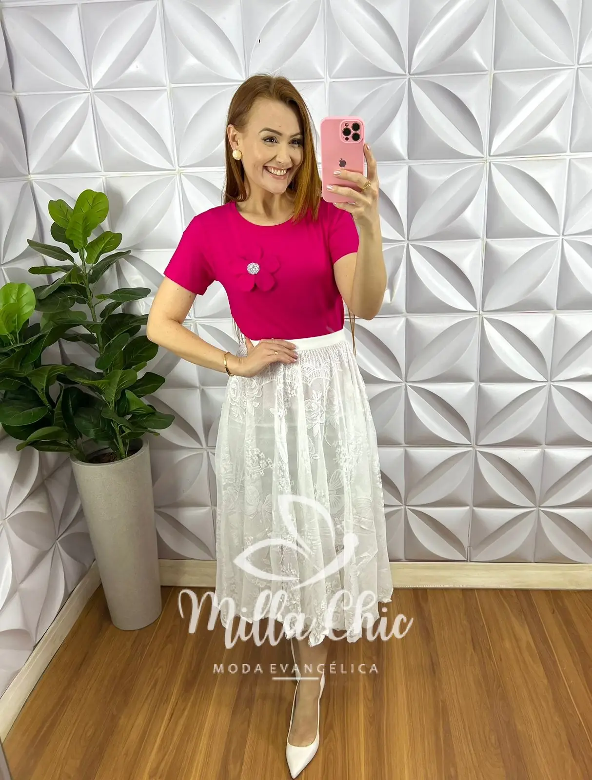 Blusa Com Aplicação de Flor No Viscolycra Florença - Pink - Milla Chic