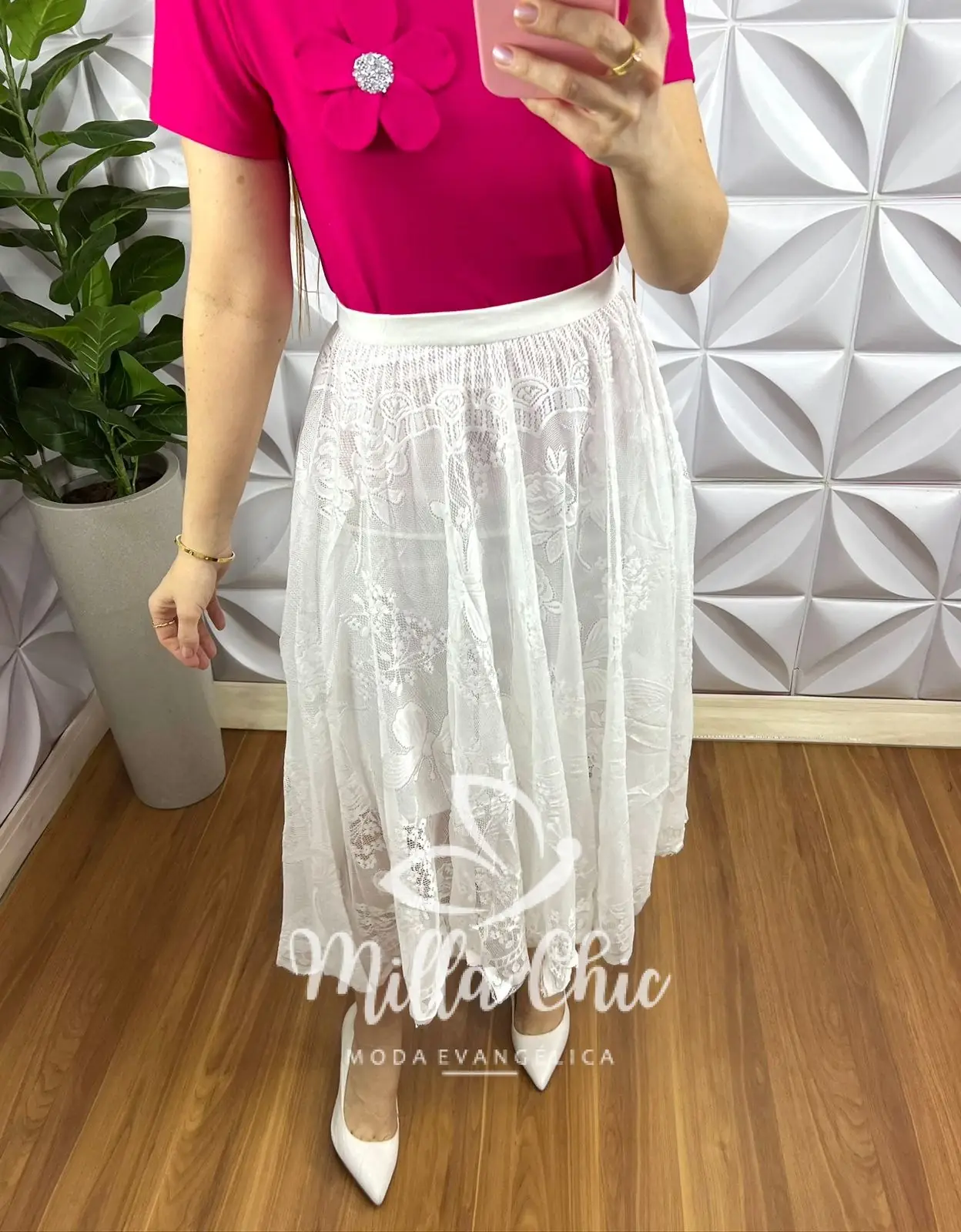 Saia Na Renda Mídi Toda Forrada Caimento Godê Layla – Branca