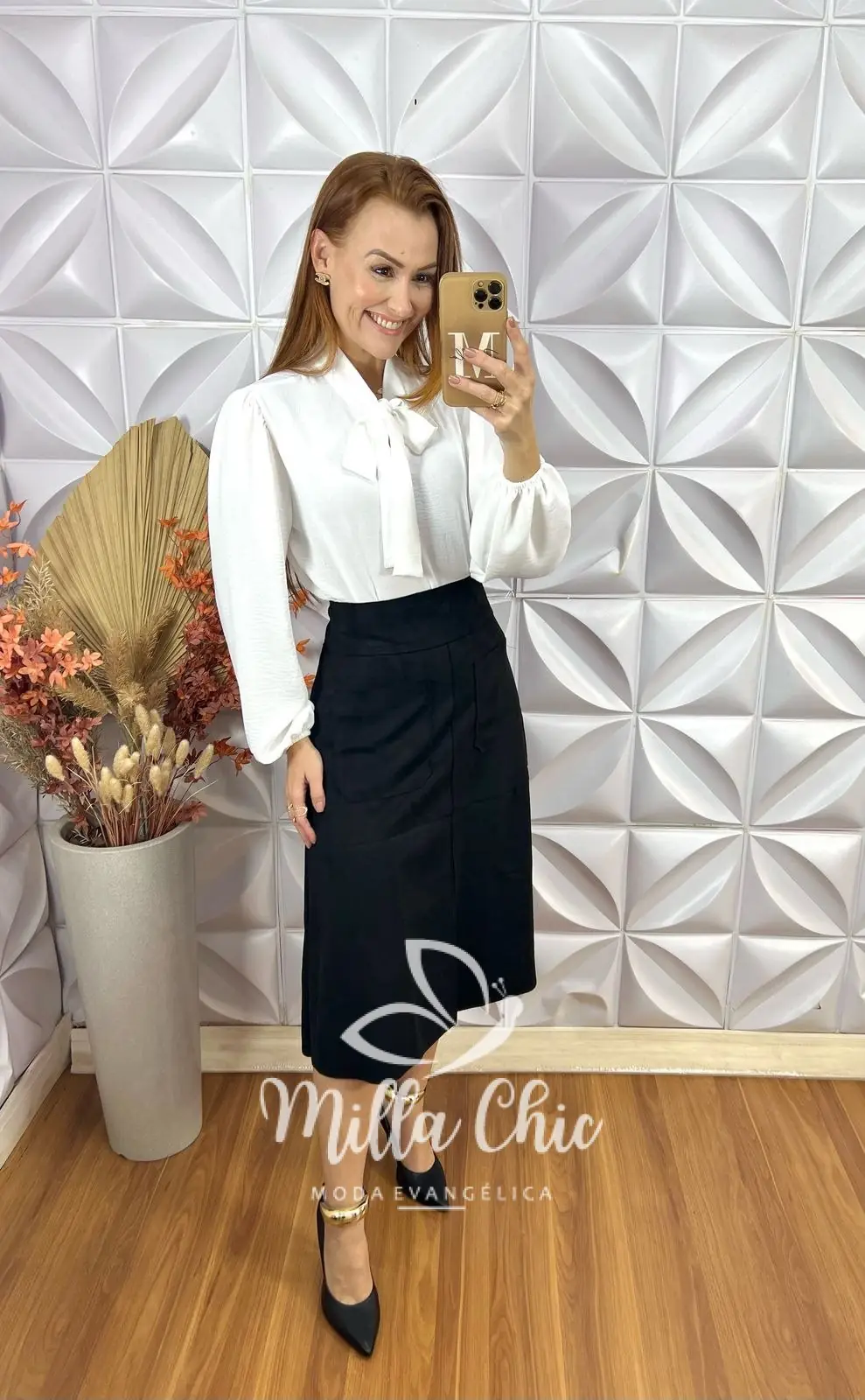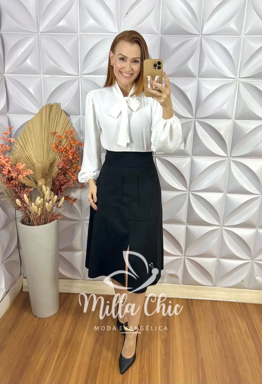 A Saia Midi Naila é a saia ideal para minhas irmãs usarem em qualquer ocasião e deixar o look perfeito e elegante .