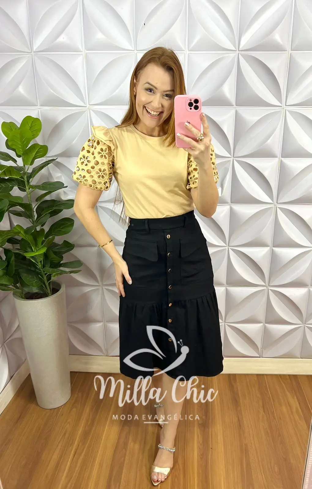 Saia no Sarja Com Elastano que está de arrasar! Para fazer vários look chic lindão!