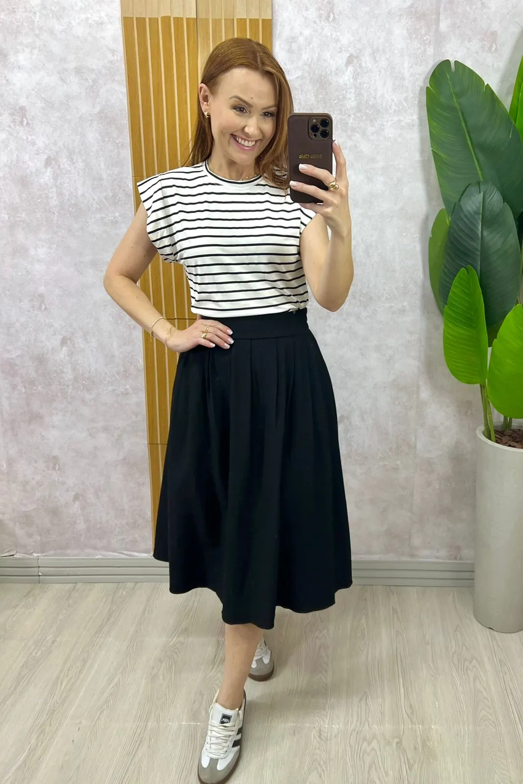 Pensa em uma saia que você pode montar vários looks que vão desde um passeio no shopping ao culto. Do tênis a sandália sem perder a elegância.