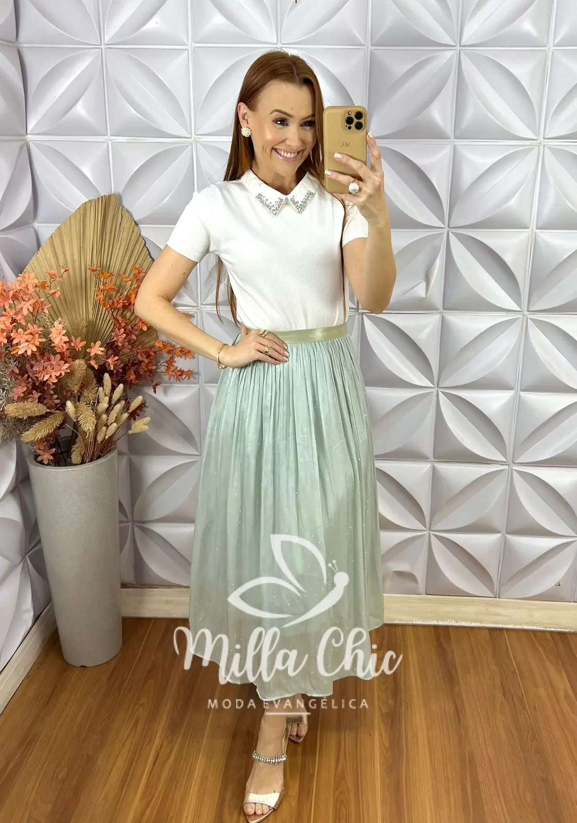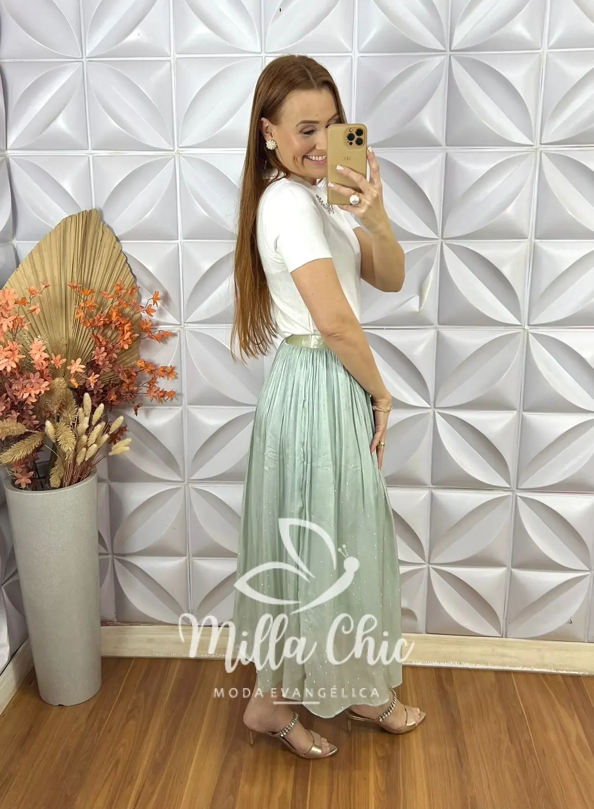 Uma peça que irradia charme e sofisticação, ideal para mulheres que desejam expressar sua personalidade através da moda. Com um design encantador ela é confeccionado em chiffon com um leve e chic acetinado . Um tecido que passa elegância , tem um caimento maravilhoso além de muito confortável . Está saia é perfeita para diversas ocasiões, para o culto , casamentos , ela deixa o look mais lindo e sofisticado .
