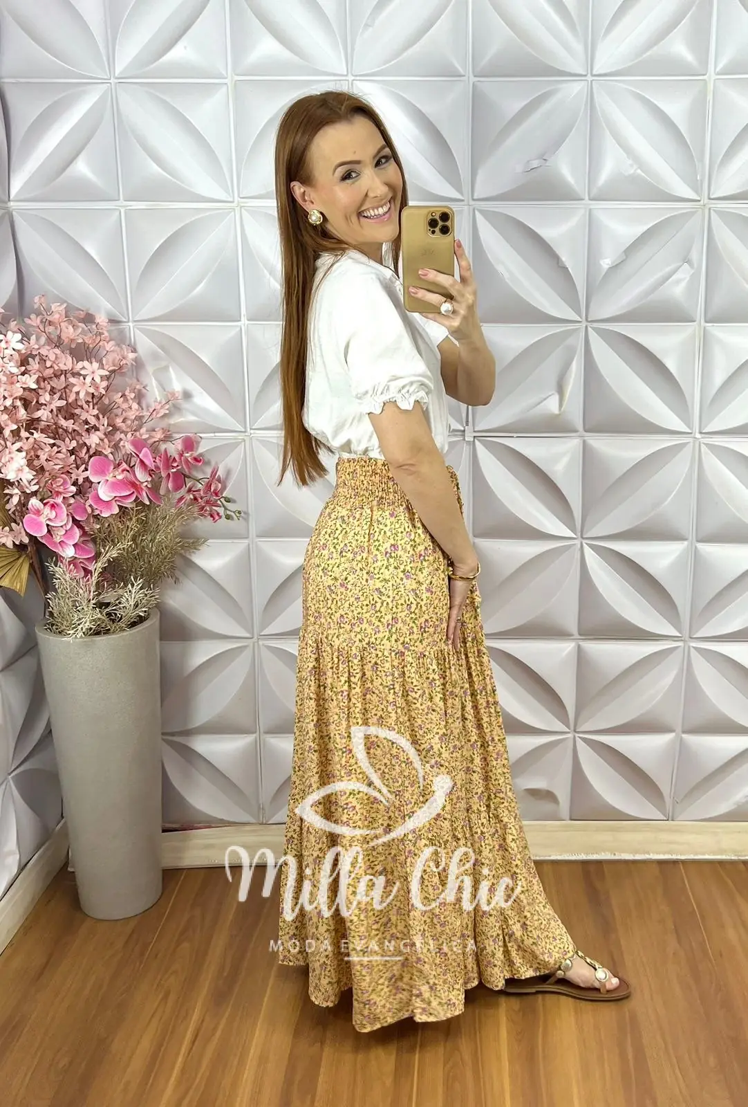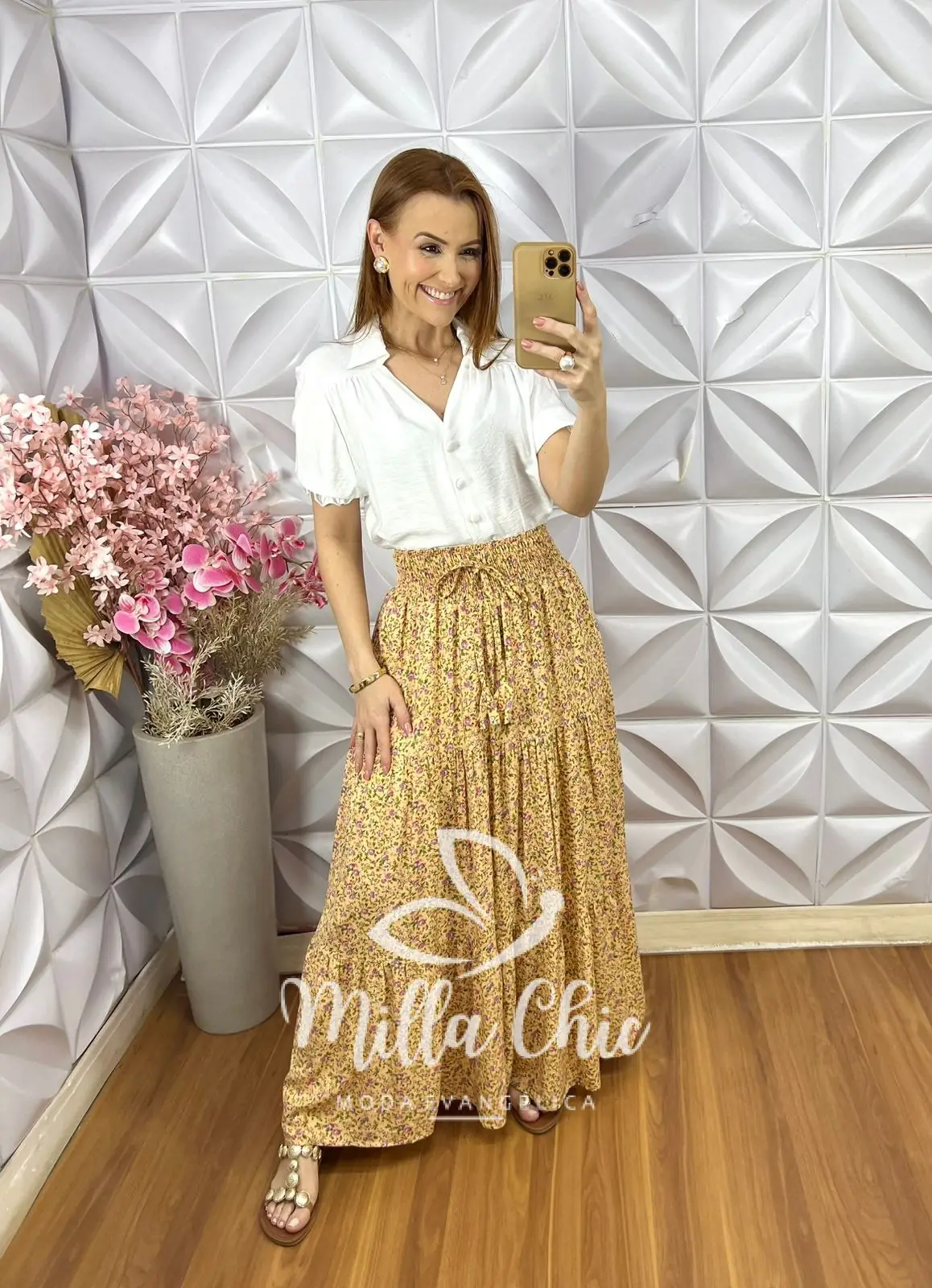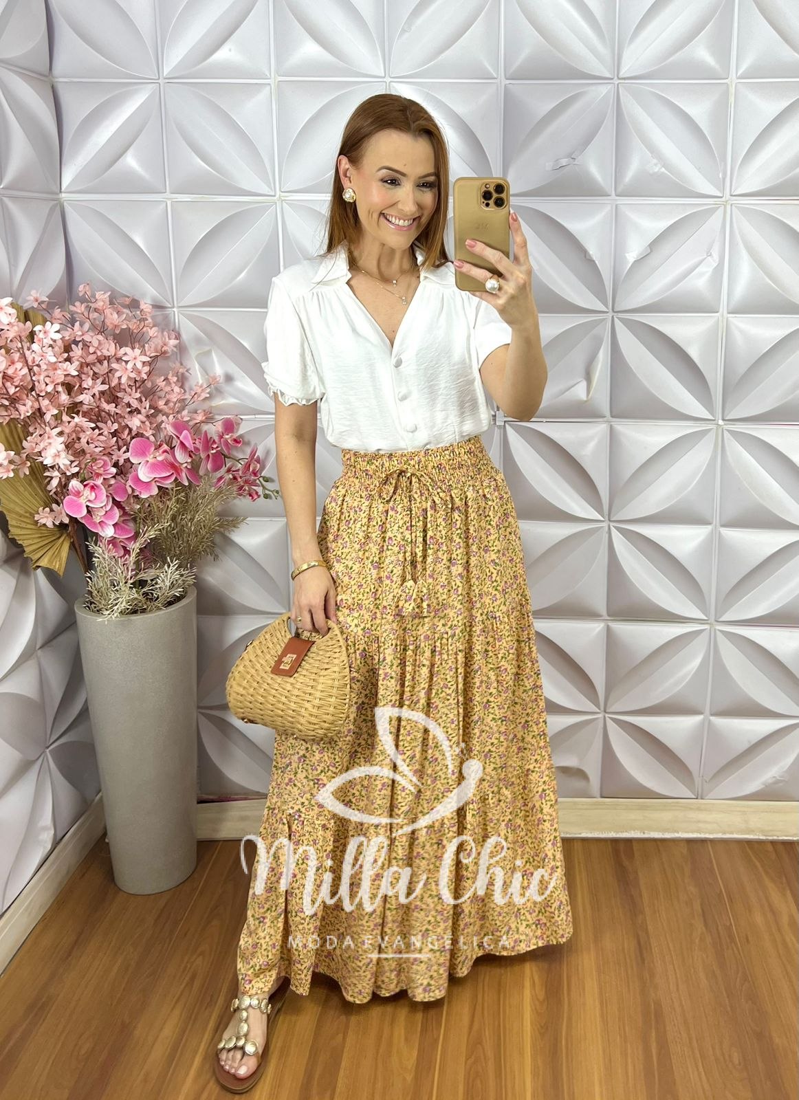 Saia Soraia em Viscolinho Póa - Estampada - Milla Chic