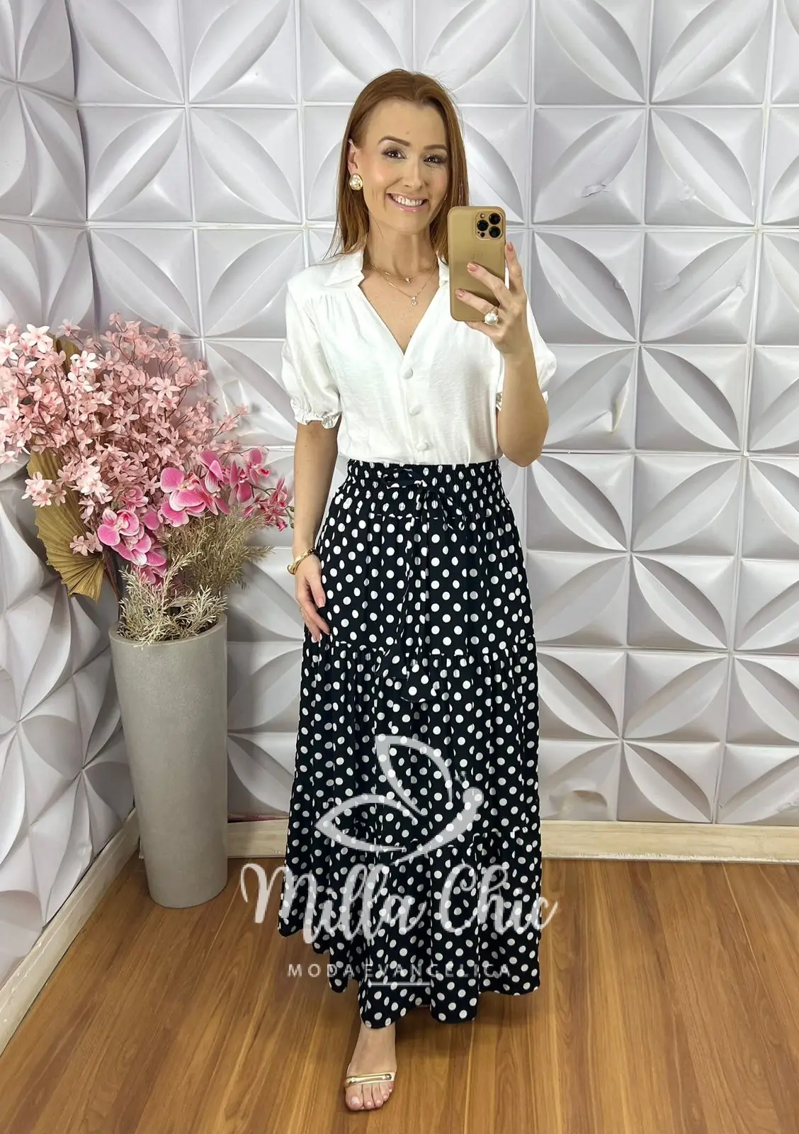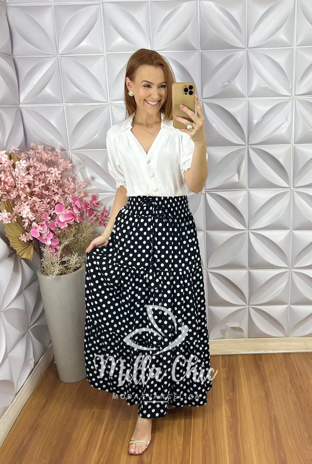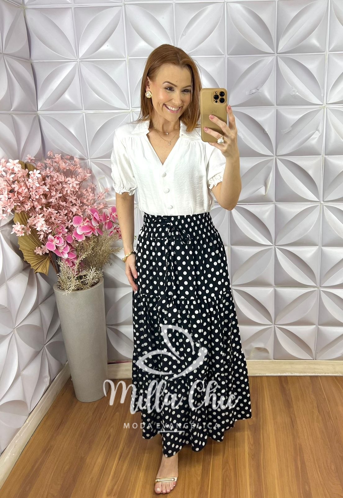 Saia Soraia em Viscolinho Póa - Preto - Milla Chic