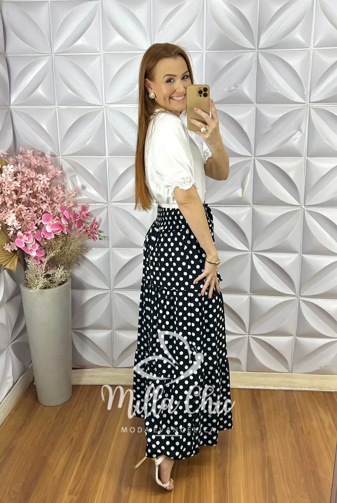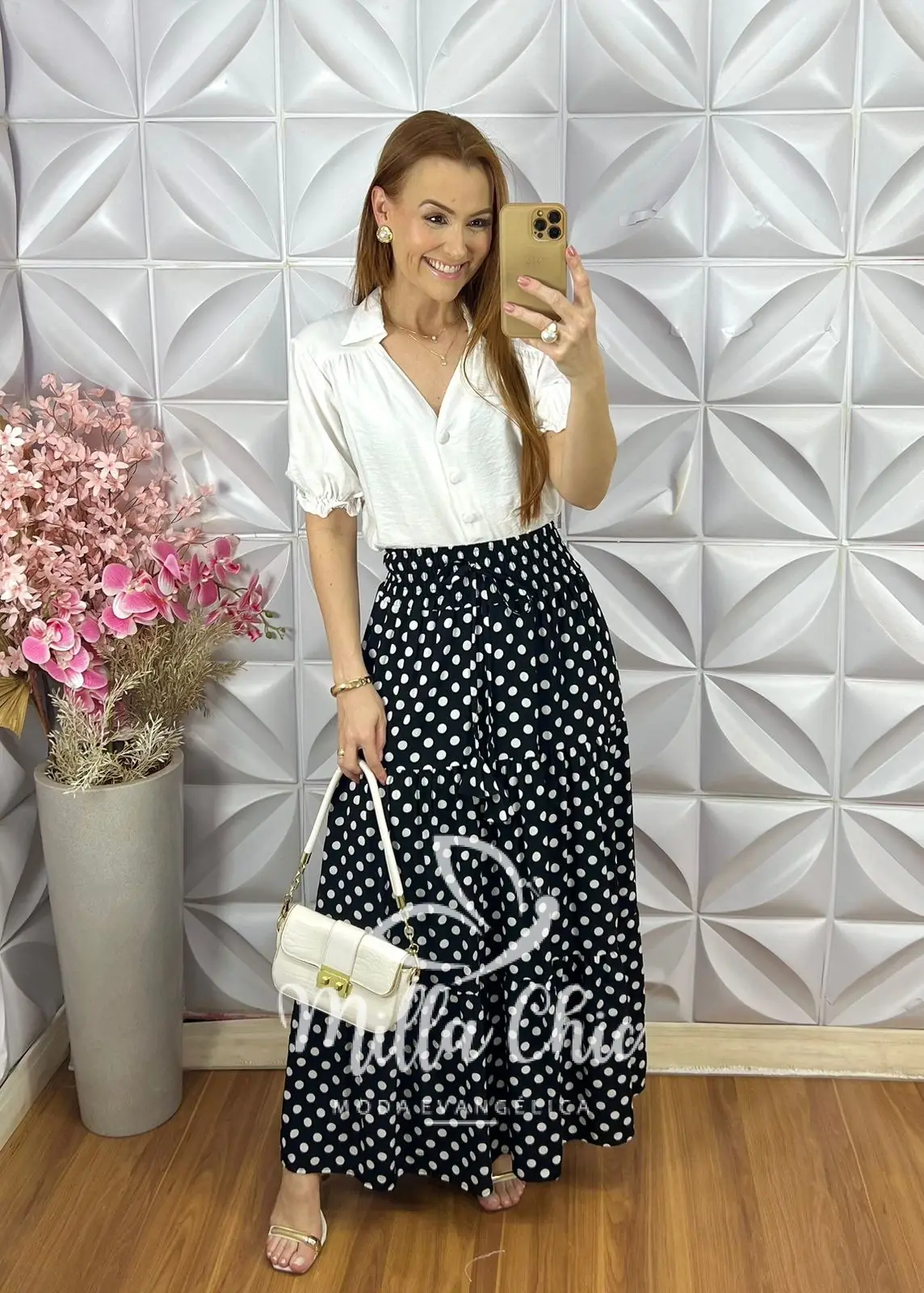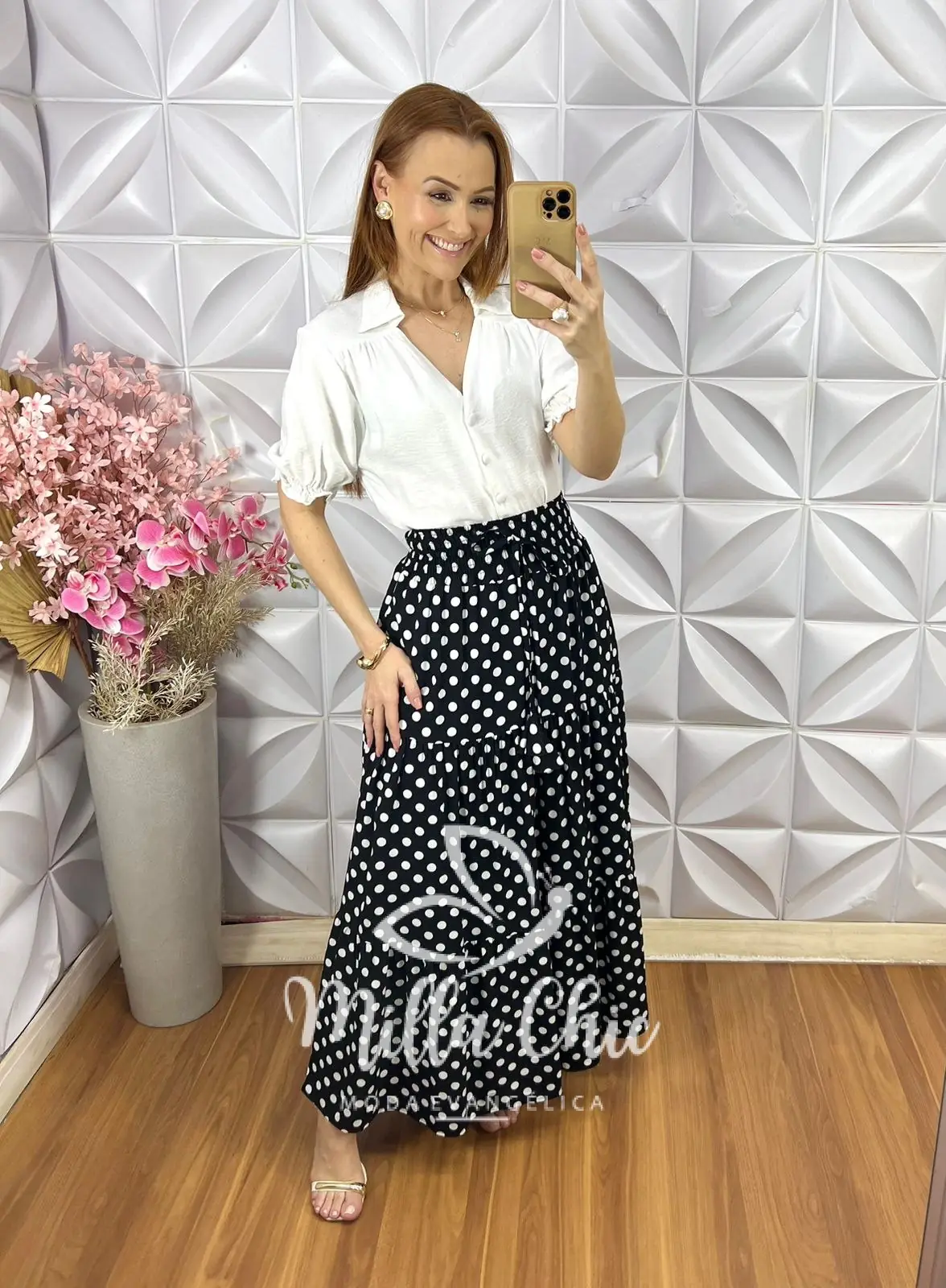 Saia Soraia em Viscolinho Póa - Preto - Milla Chic