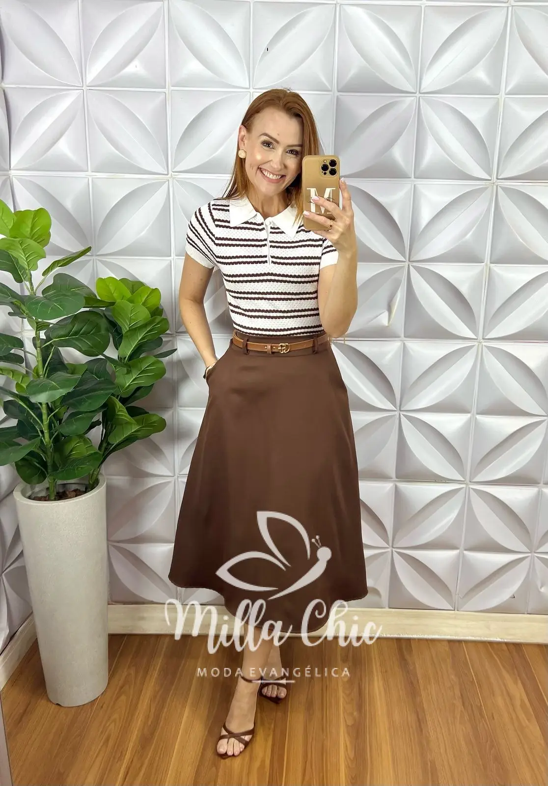 Uma saia clássica atemporal na modelagem godê super romântica e feminina .