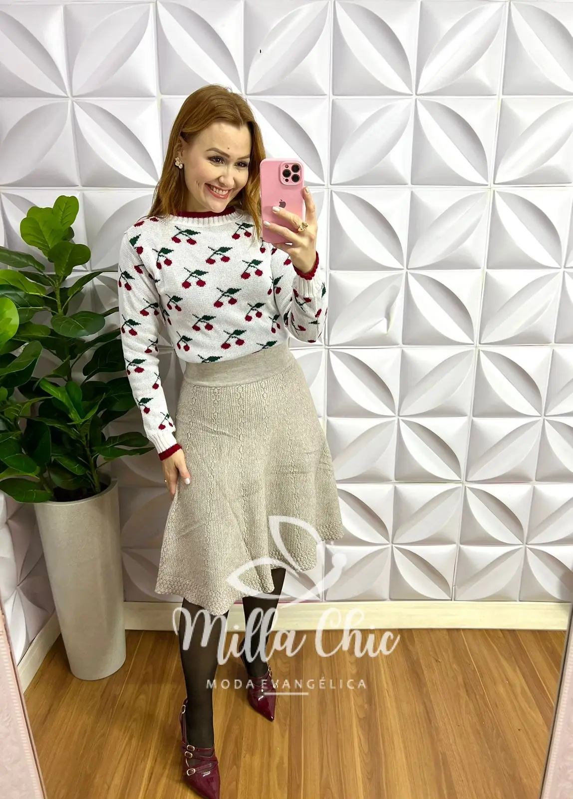 Saia Trico Com Elástico Na Cintura Natalie - Mescla - Milla Chic