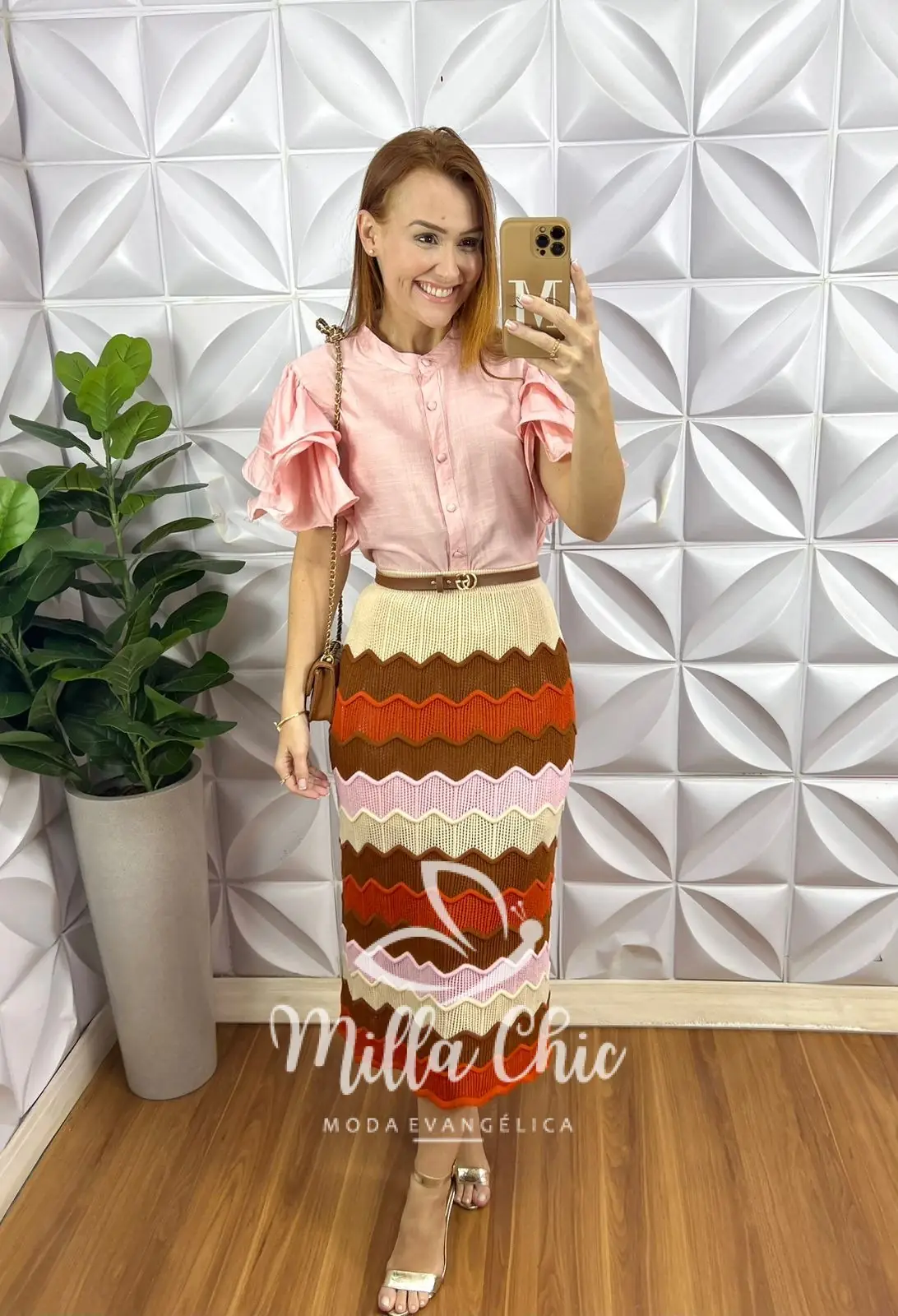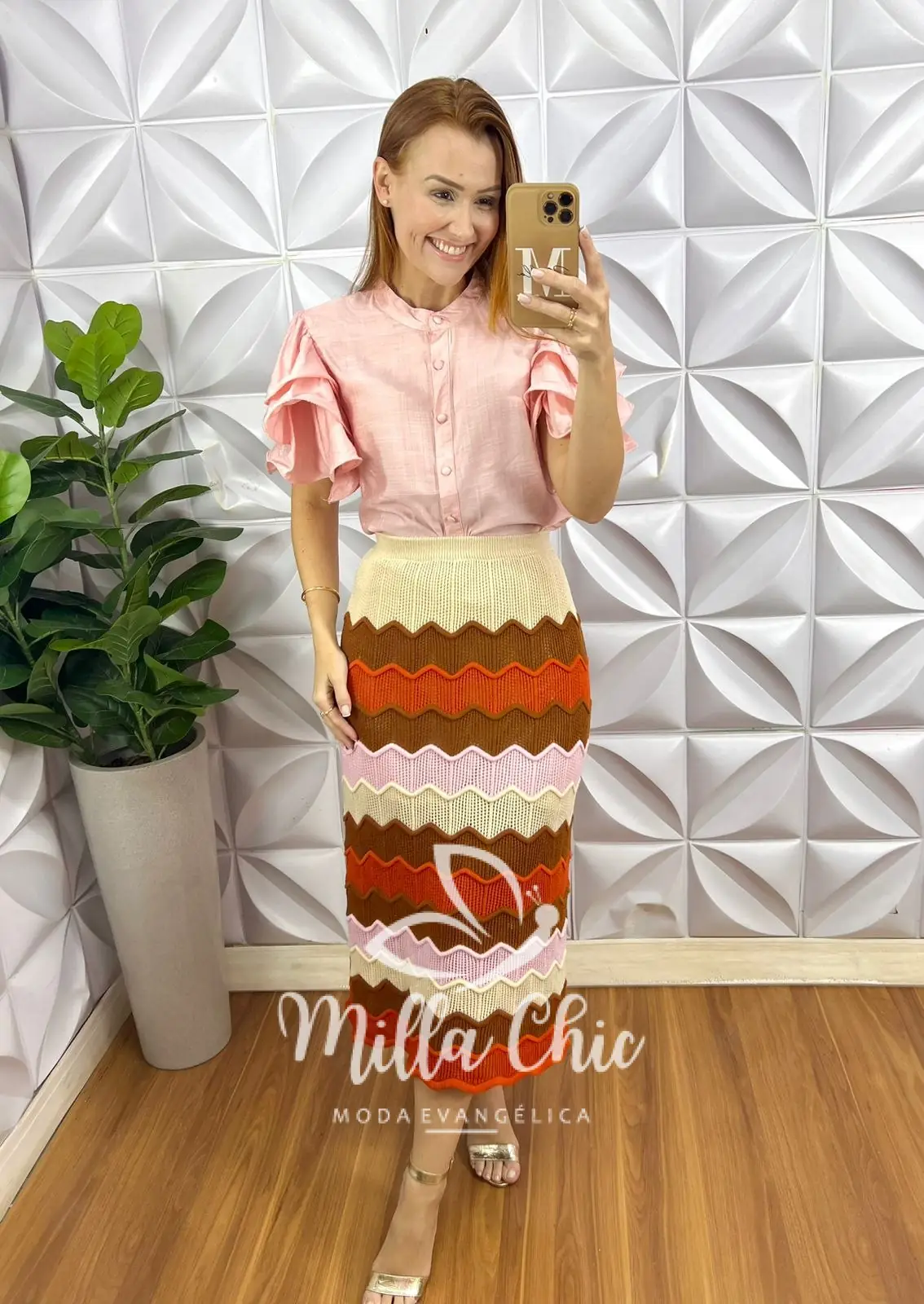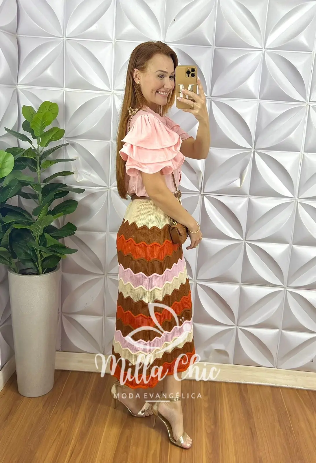 Saia Tricot Verona - Laranja E Rosa - Milla Chic