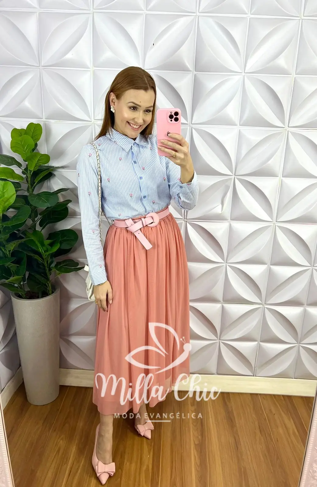 Saia Tule Longa com Lastex na Cintura Adriele - Rose - Milla Chic