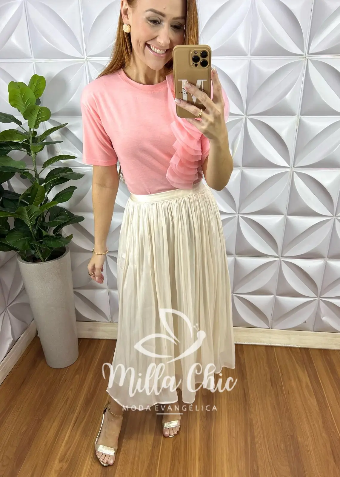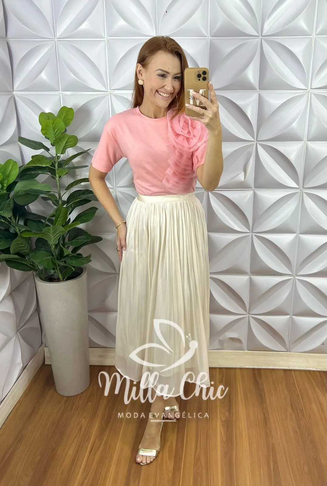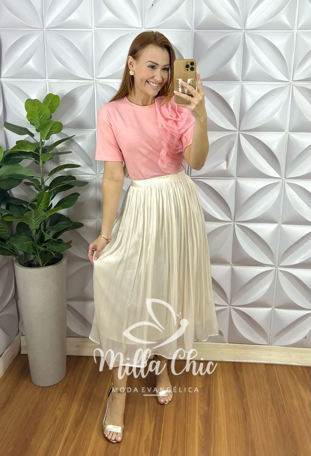 Super delícia de usar , confortável e tem um caimento perfeito . Toda confeccionada no tecido chiffon super leve e com um leve brilho acetinado que deixa ela muito chic lindona .