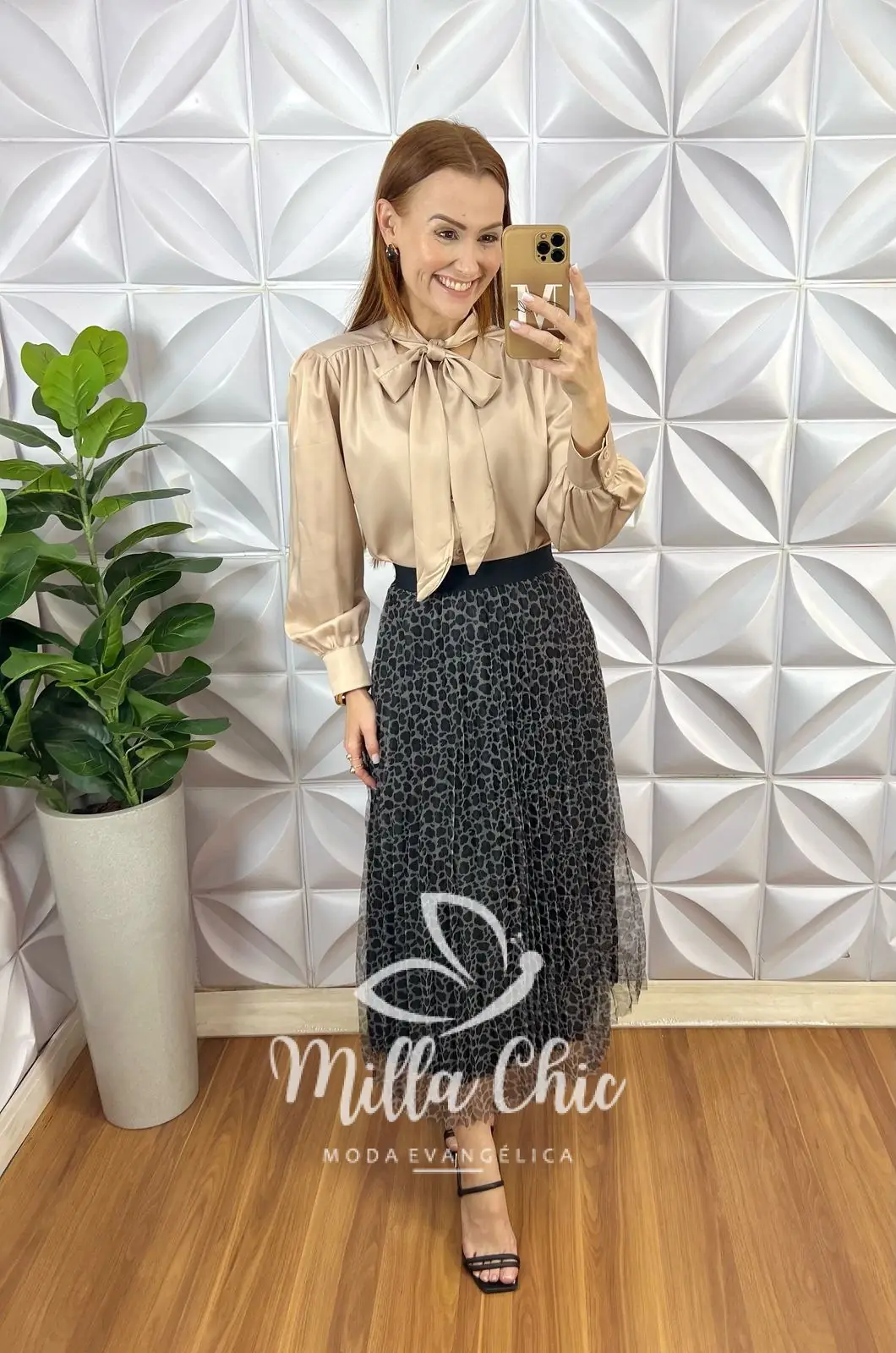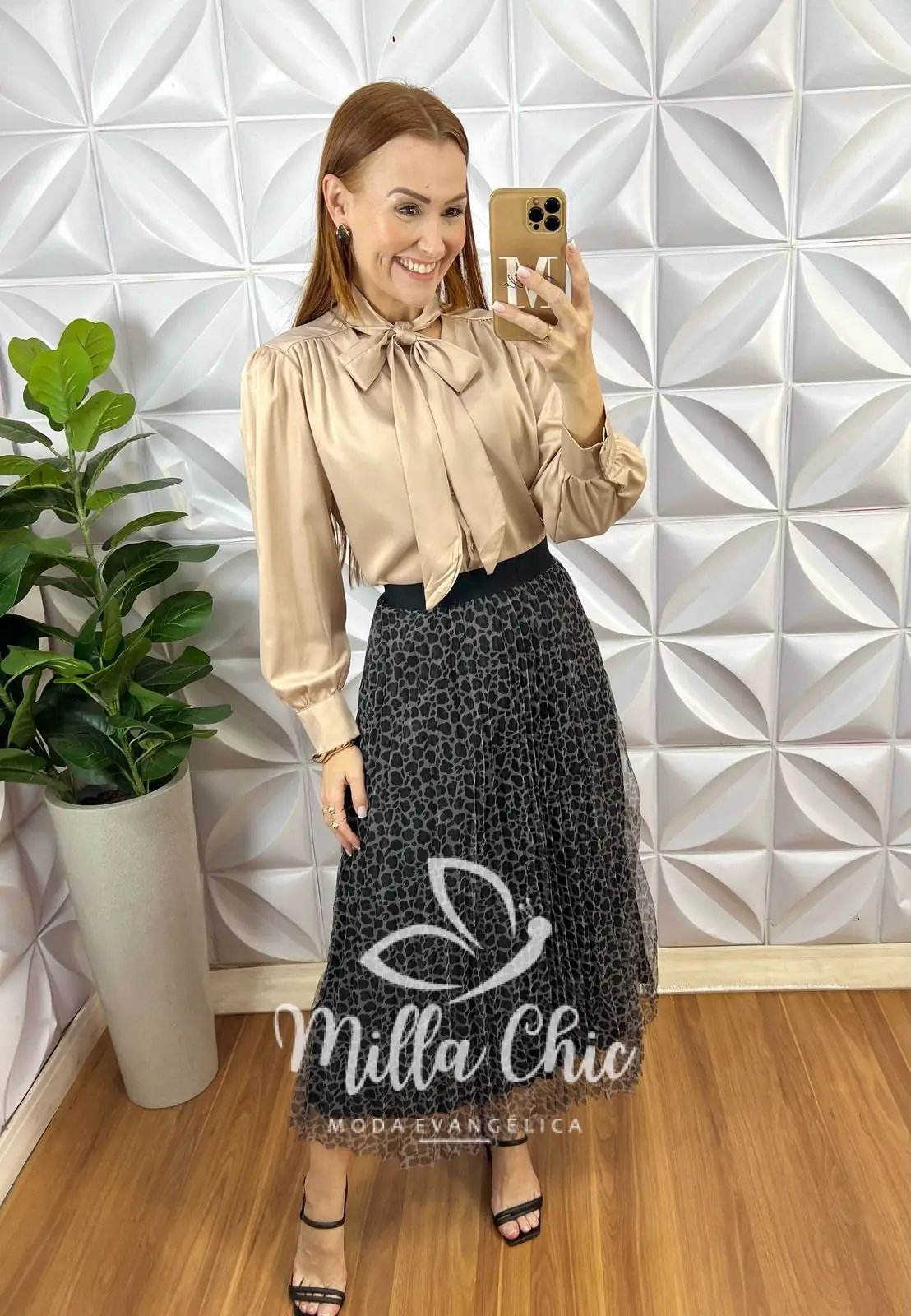 Essa é nossa saia Ursula . Aquela saia clássica godê mais com um toque super moderno e tendência do tule a . Sabe aquela saia estilosa e atemporal , que não cai de moda . É essa ! Estampa em animal print super estilosa e o tule é plissado dando aquele toque mais sofisticado.