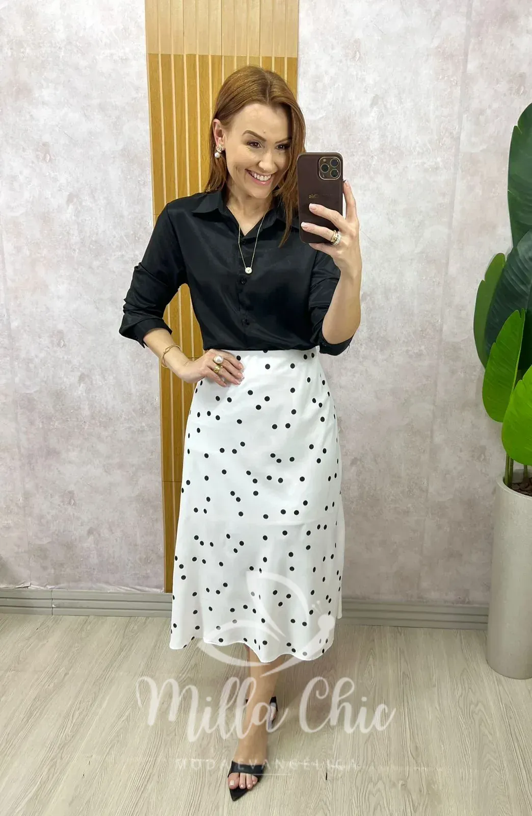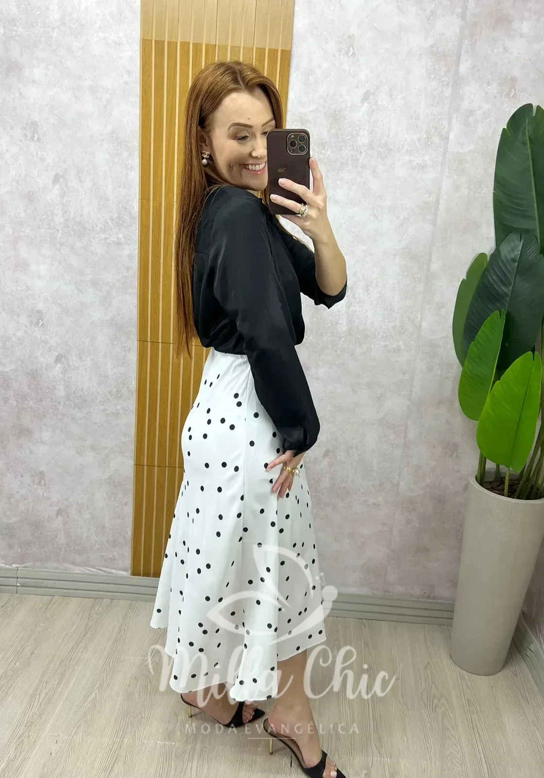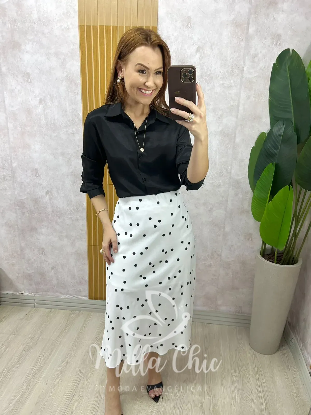 Saia midi em crepinho, com caimento impecável que valoriza o corpo de forma elegante e natural. Sua modelagem foi pensada para vestir perfeitamente, acompanhando a silhueta com leve fluidez.