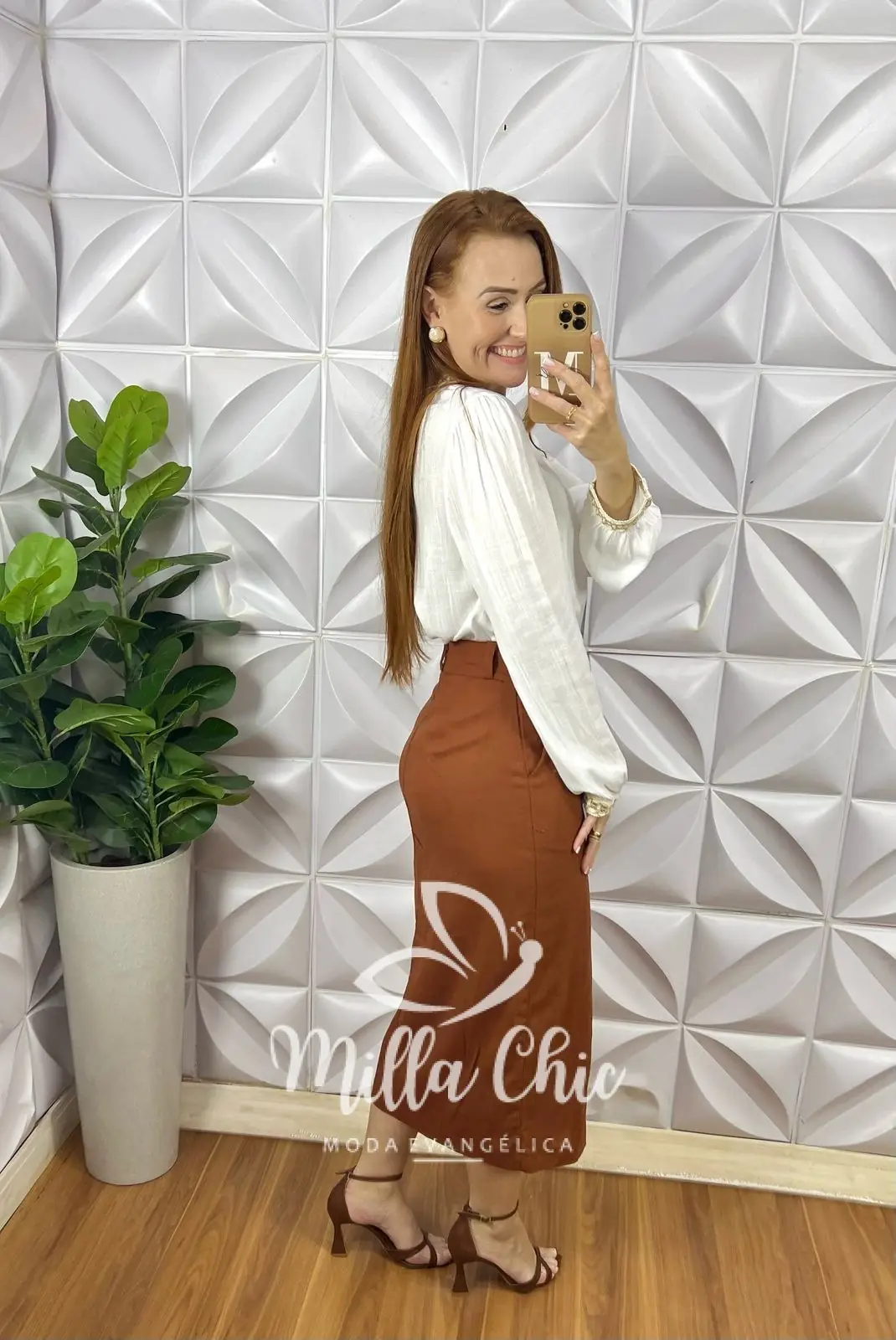 A Saia Midi em linho Versales é a saia ideal para minhas irmãs usarem em qualquer ocasião e deixar o look perfeito e elegante .