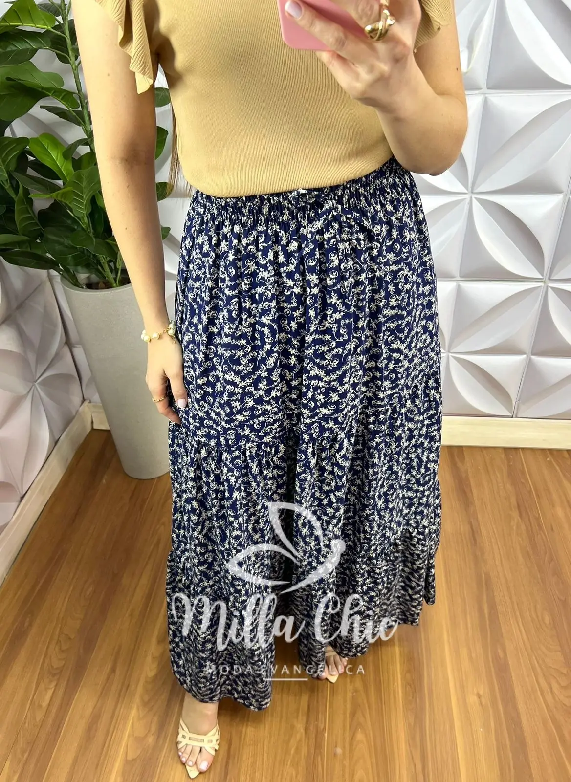 Saia Viscose Com Lastex Na Cintura Longa Quitéria – Azul Marinho