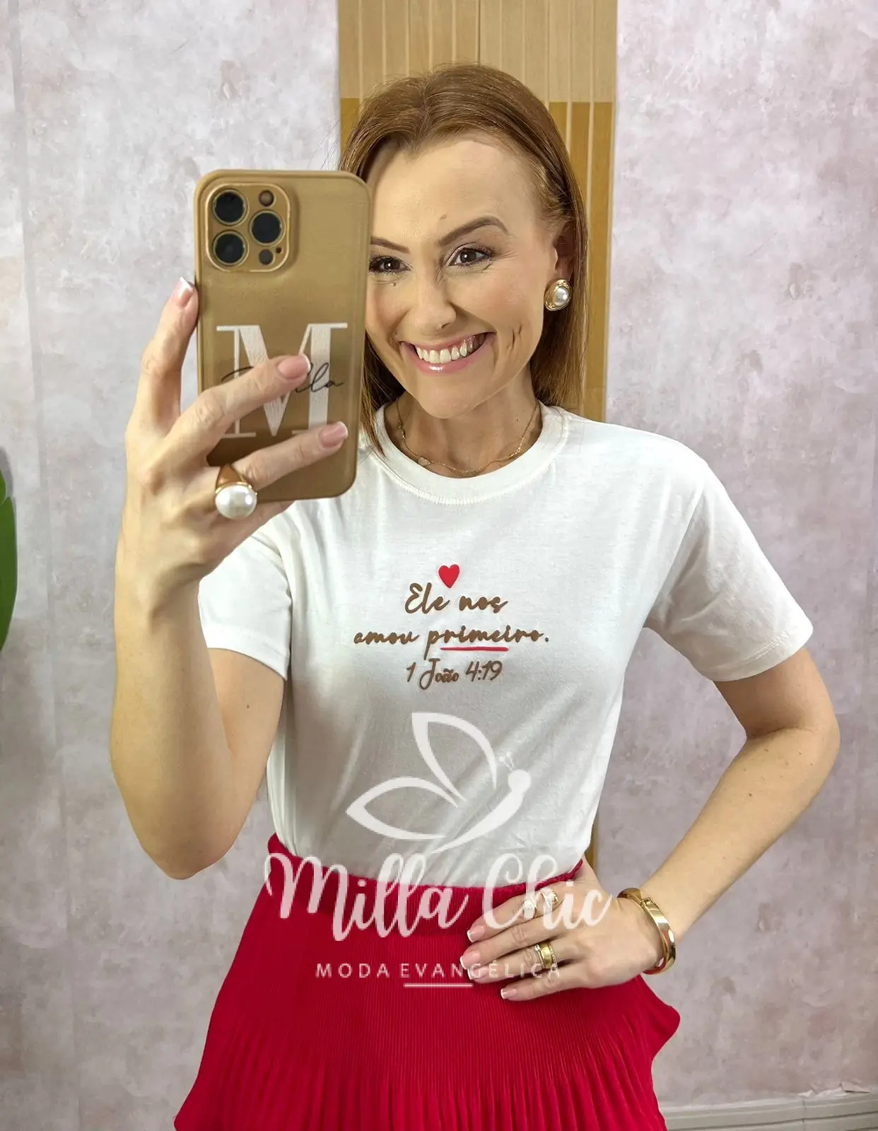 Essa está com o versículo ELE NOS AMOU PRIMEIRO .Além de chic um posicionamento de quem nós somos e no que acreditamos.