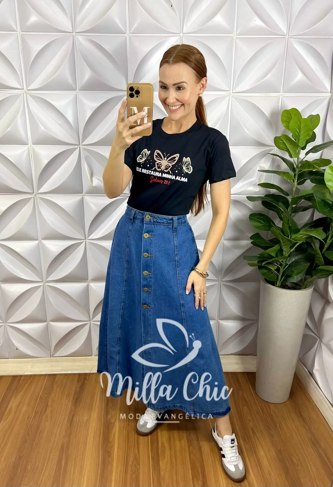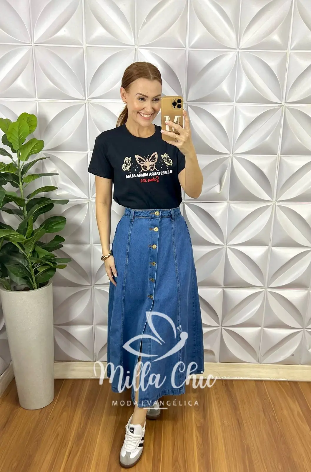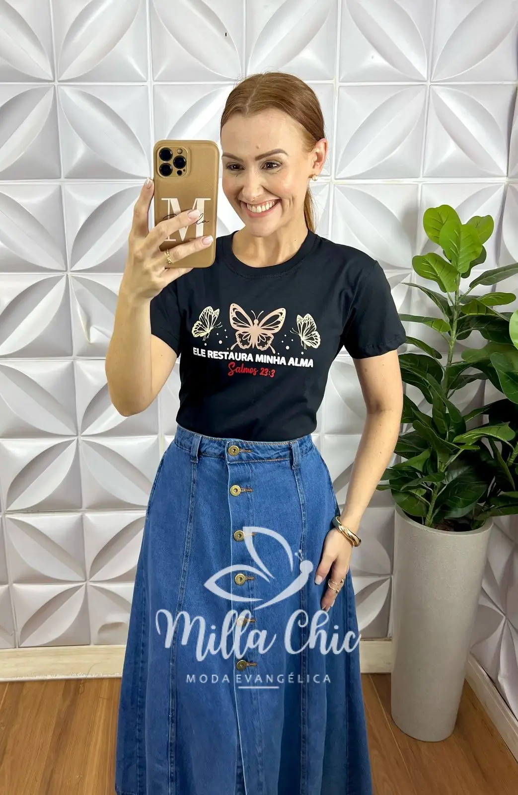Essa está com a frase Abençoada. Além de chic um posicionamento de quem nós somos e no que acreditamos