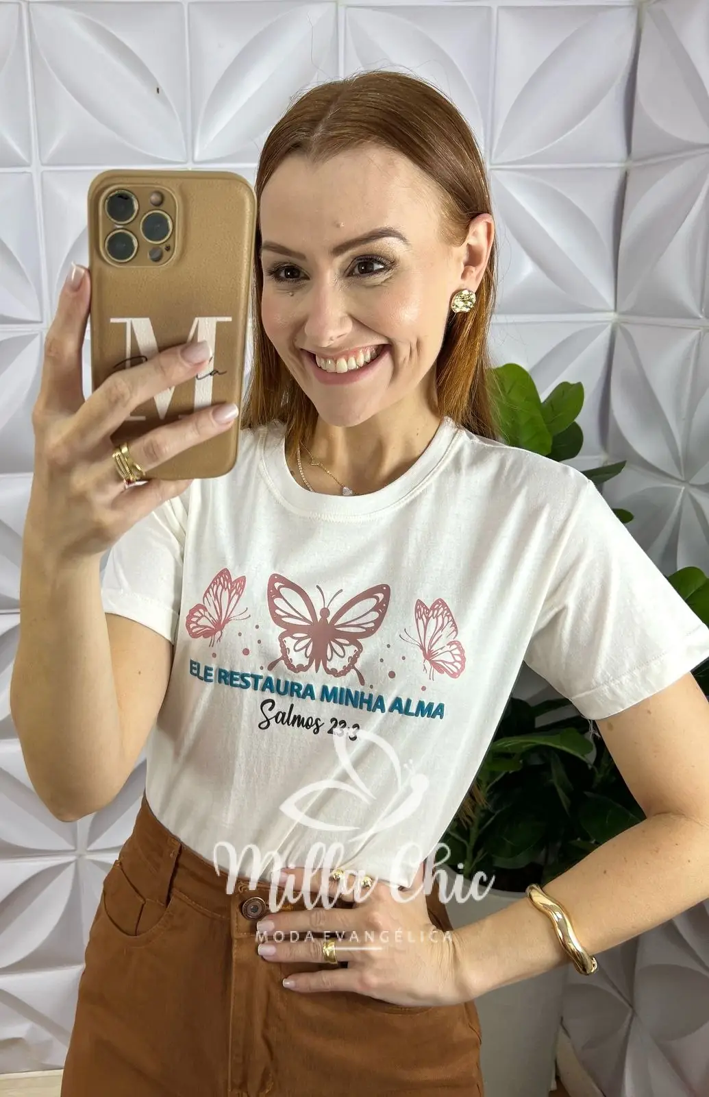 Essa está com a frase Abençoada. Além de chic um posicionamento de quem nós somos e no que acreditamos