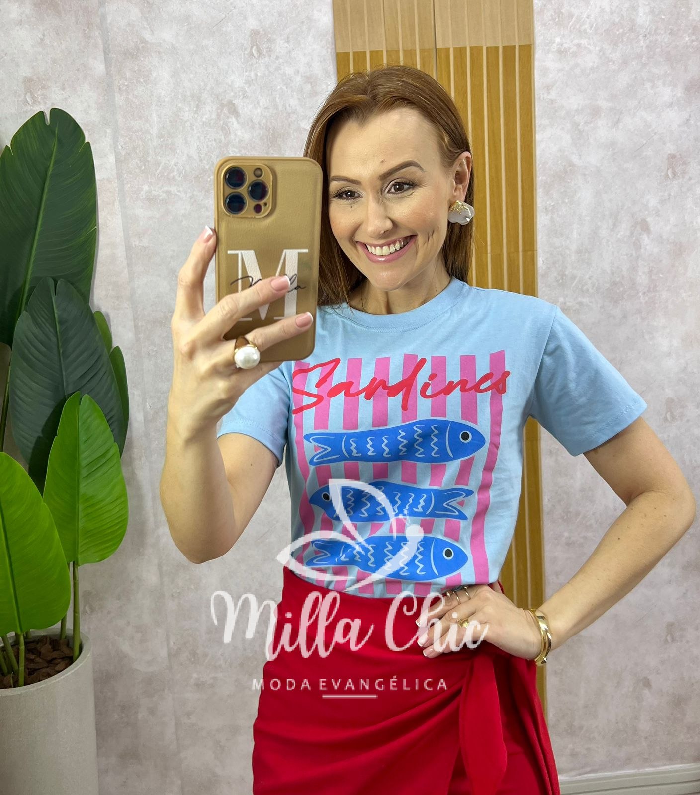 Ela é confeccionada na malha 100% algodão. Super confortável, fresca e veste muito bem.
