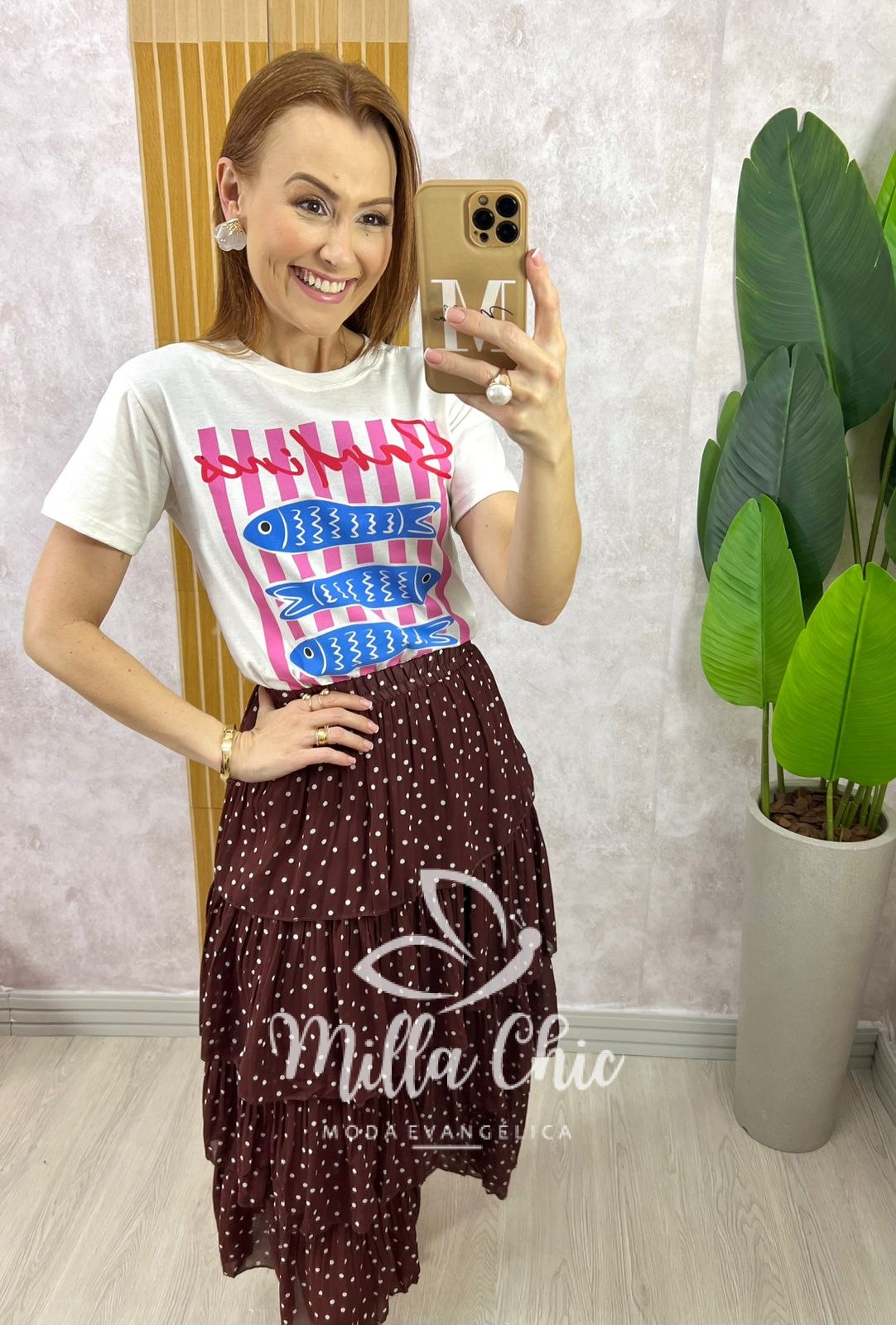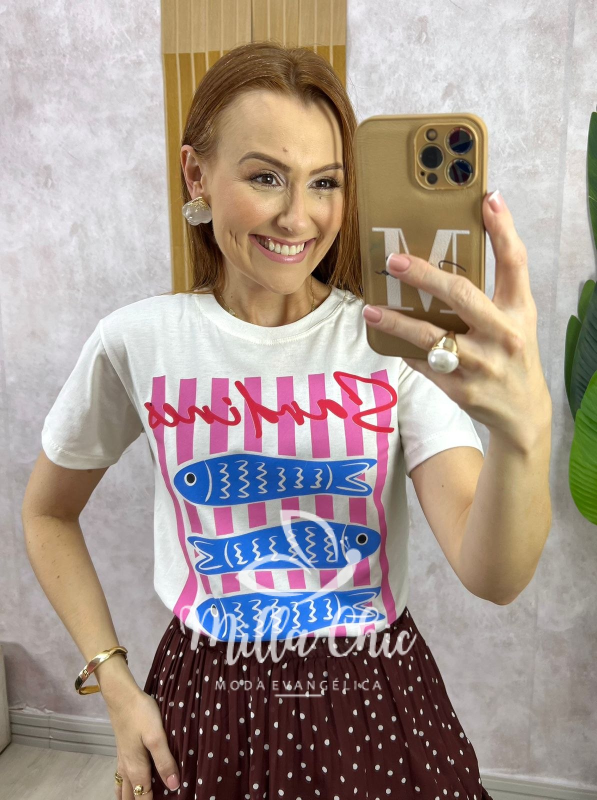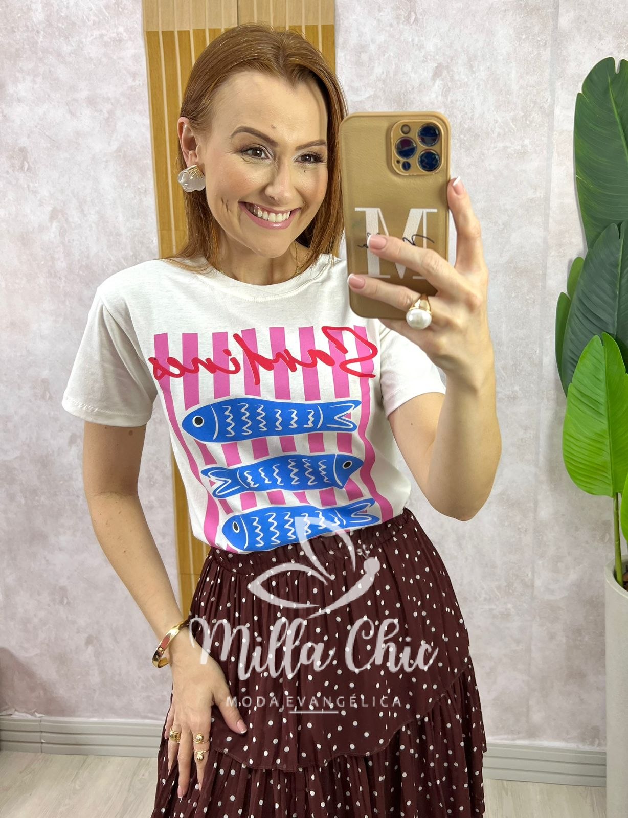 T shirt Sardinha 100% algodão - Off White - Milla Chic