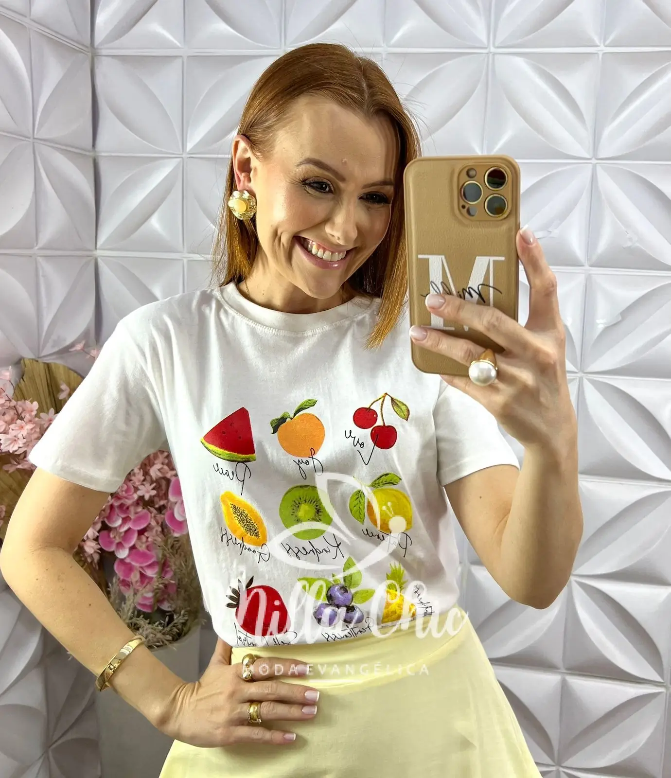 T-shirt Tropical Malha Algodão - Branca - Milla Chic
