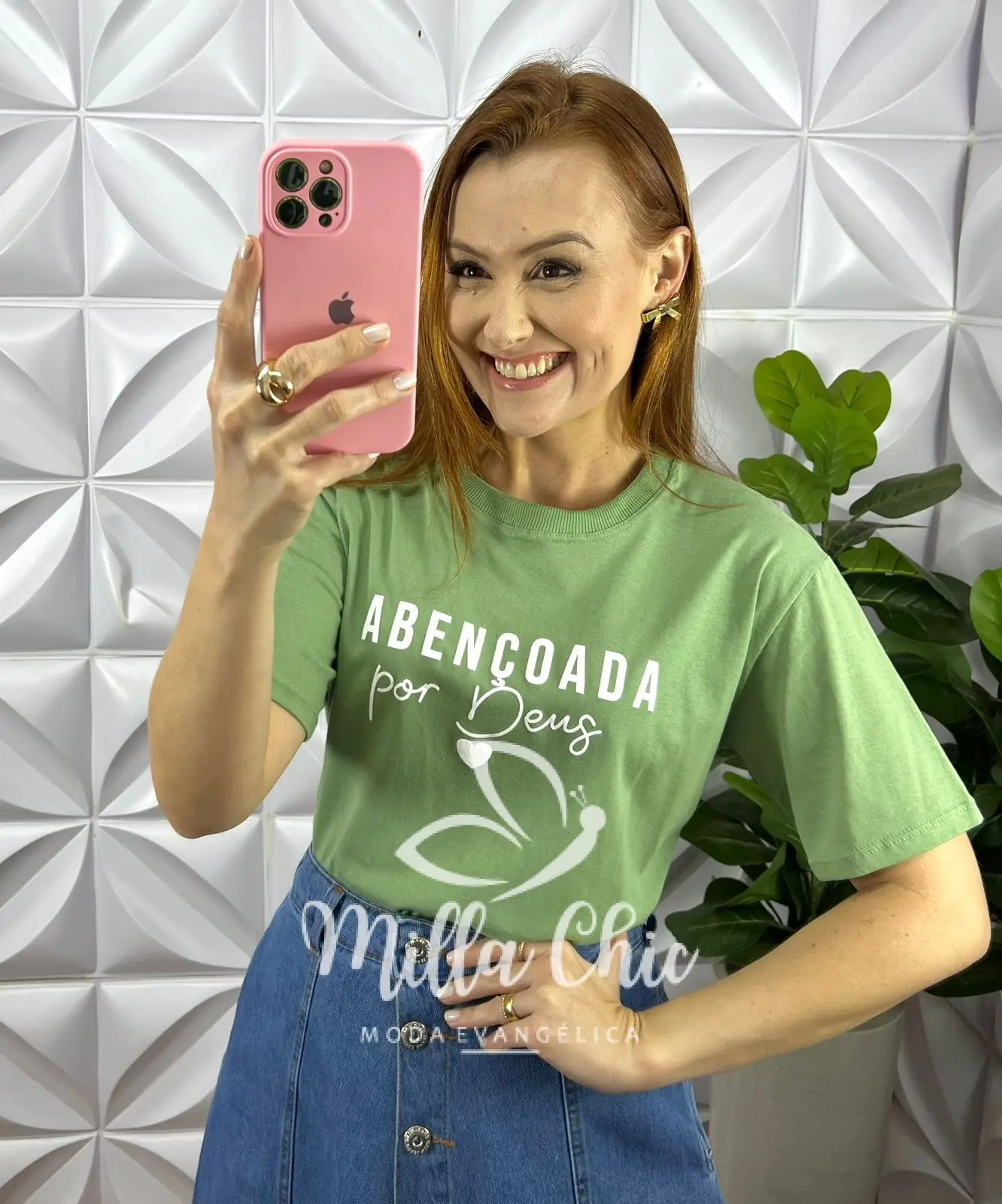 Tshirt lançamento toda no malha de algodão tecido incrível! Possui Frase Silcada ” Nunca ando so Deus esta comigo” que esta um charme!
