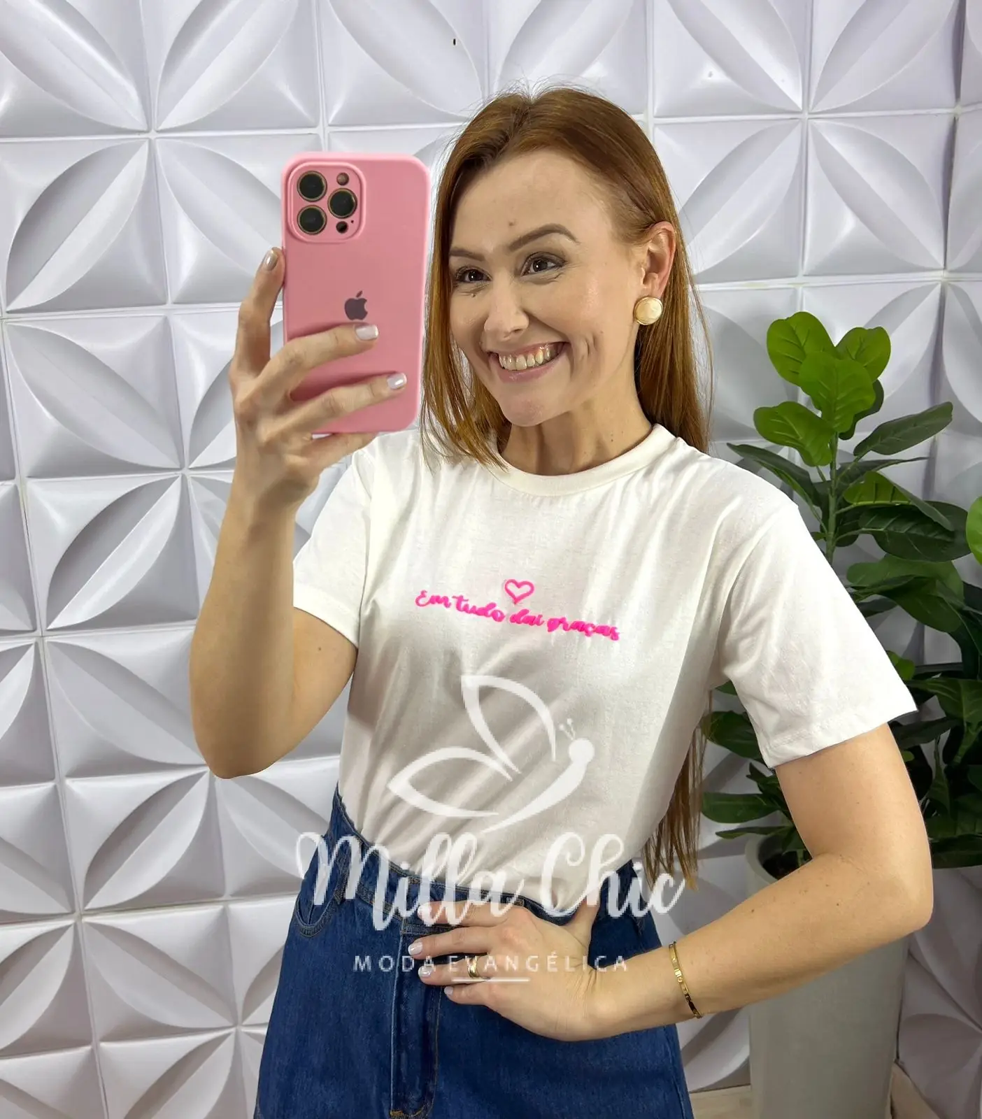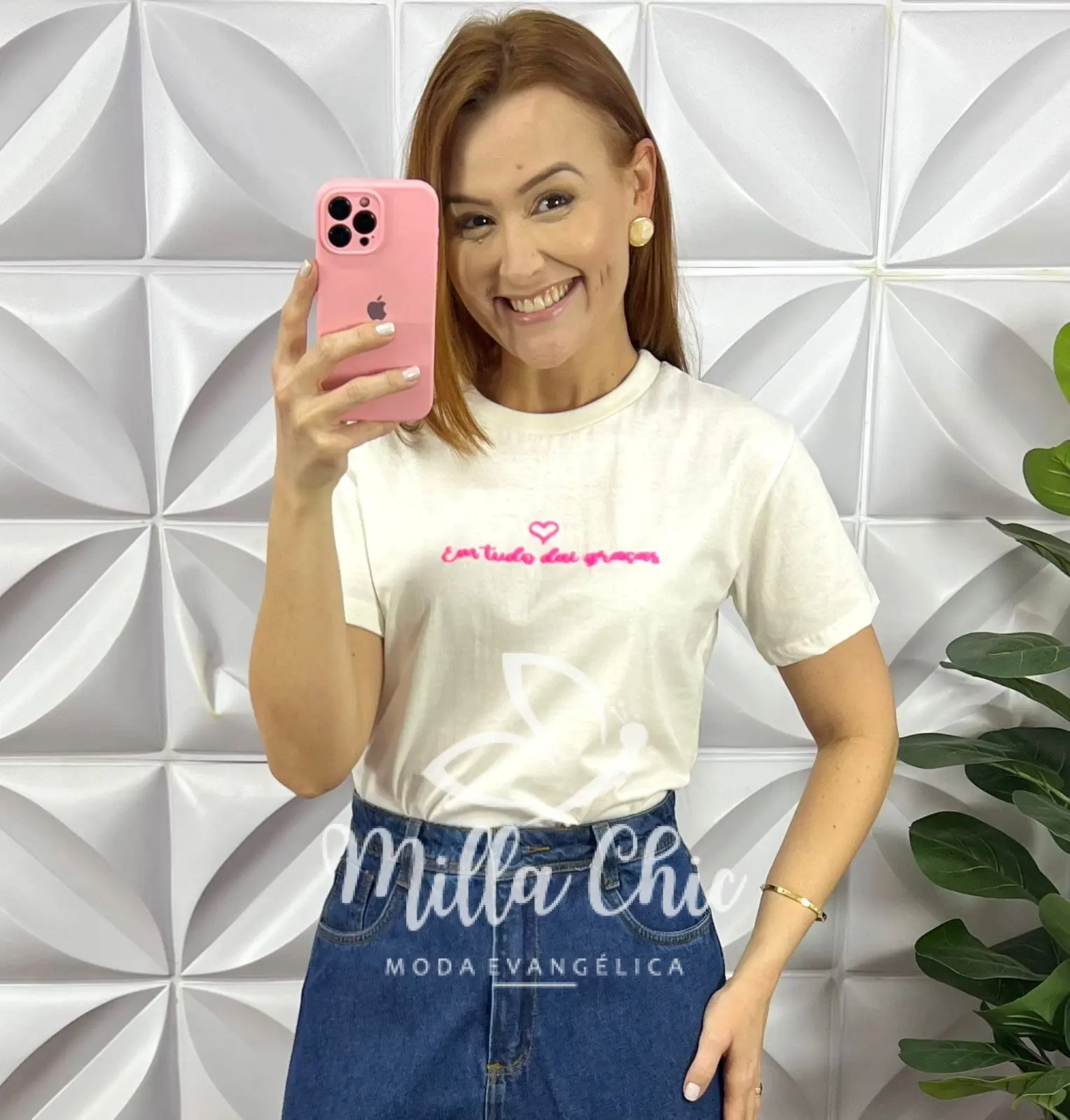 Tshirt lançamento toda no malha de algodão tecido incrível! Possui Frase Silcada ” Em tudo dai graça” que esta um charme!