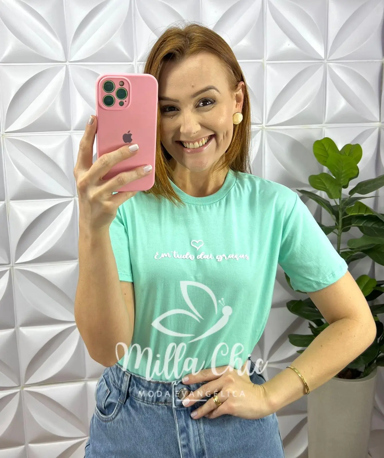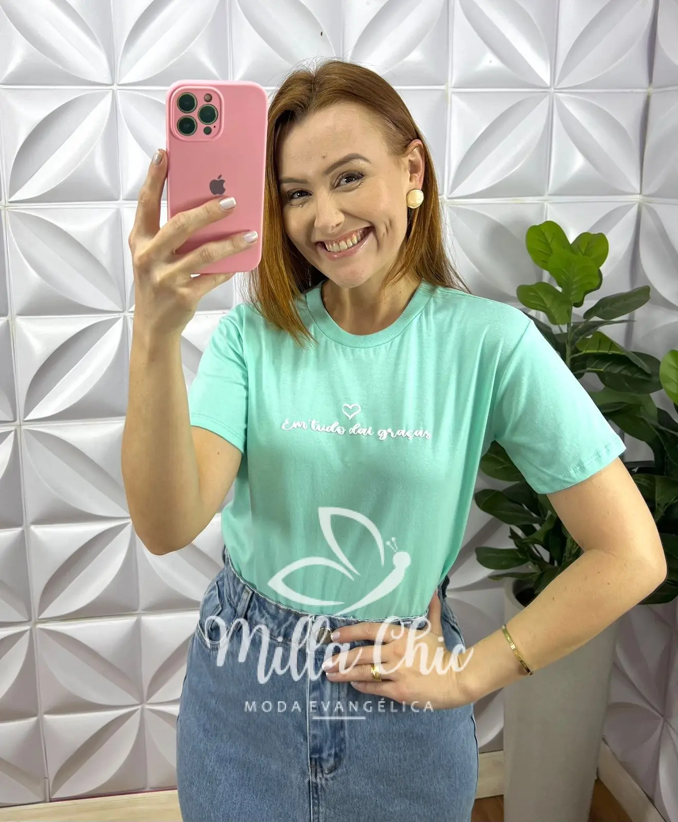 Tshirt lançamento toda no malha de algodão tecido incrível! Possui Frase Silcada ” Em tudo dai graça” que esta um charme!