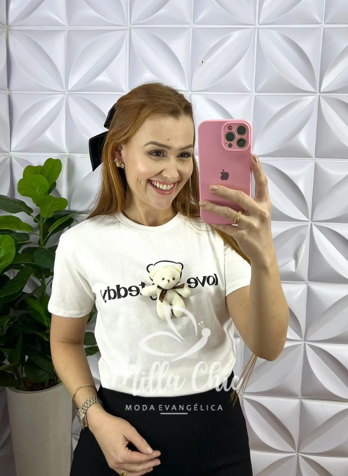 Tshirt De Malha de Algodão Ursinho Removível Laila – Branca