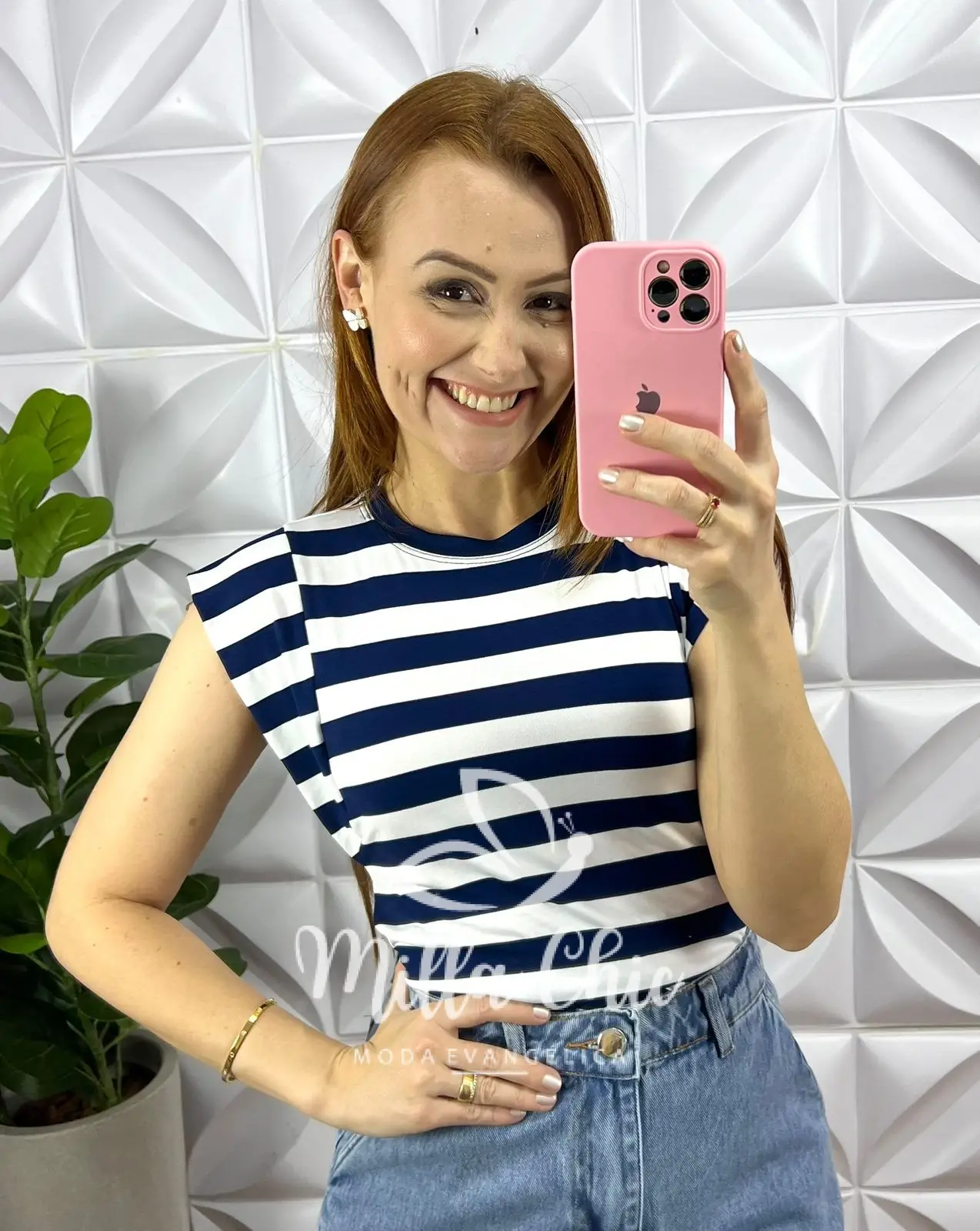 Tshirt Viscolycra Manga Muscle Listrada Maraisa - Azul - Milla Chic