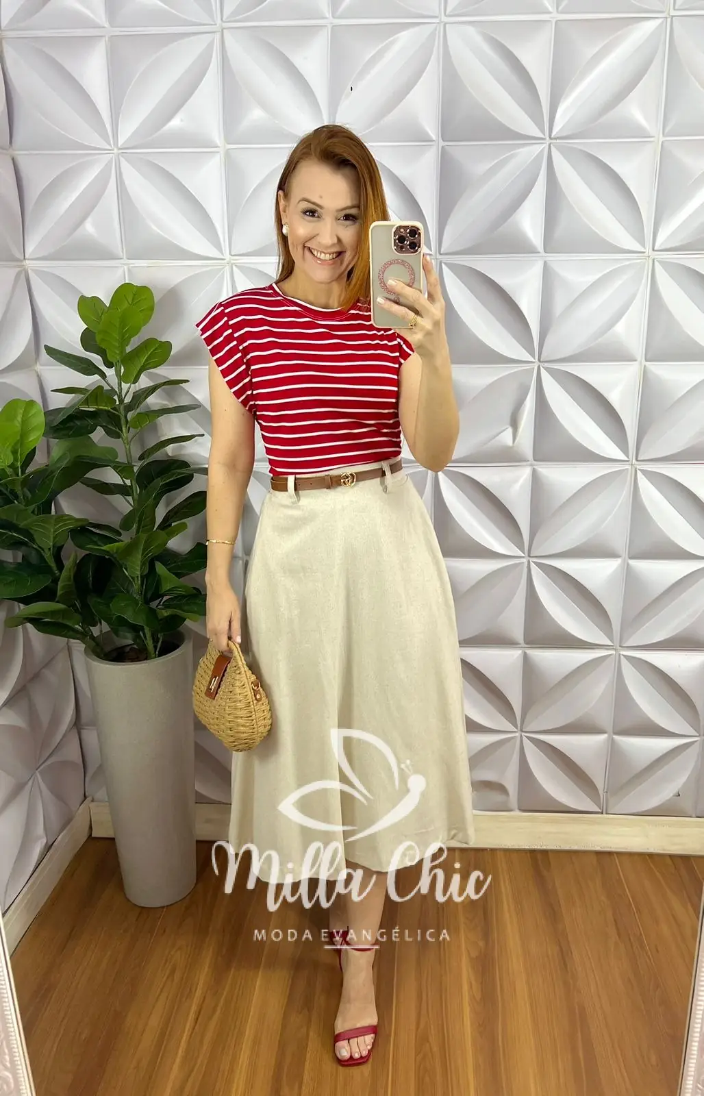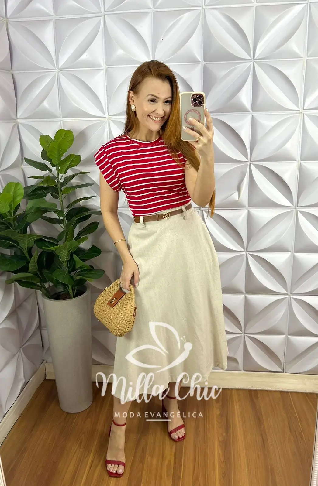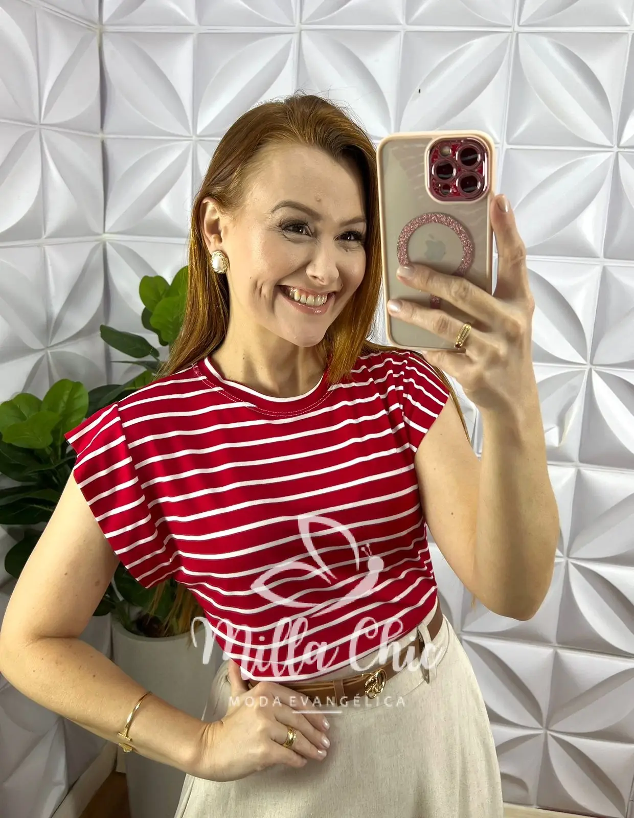 Tshirt Viscolycra Manga Muscle Listrada Maraisa - Vermelho - Milla Chic
