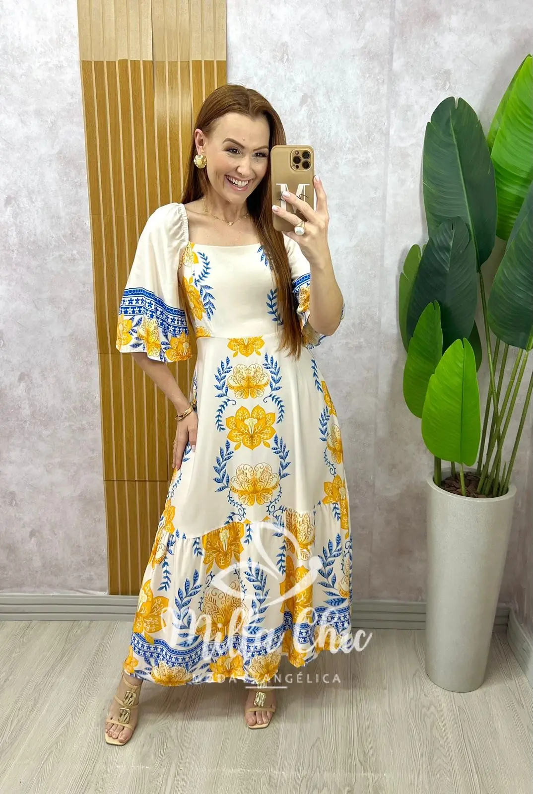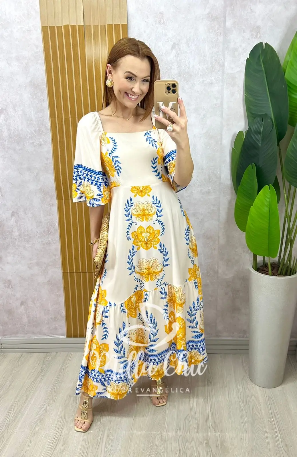 O vestido Agatha tem essa estampa linda tropical e bem verão que transmite elegância e autenticidade. Ele apresenta um design midi possui elastex nas costas que valoriza a silhueta feminina, proporcionando um caimento perfeito. Ele une praticidade e charme, permitindo que você carregue estilo encantador.