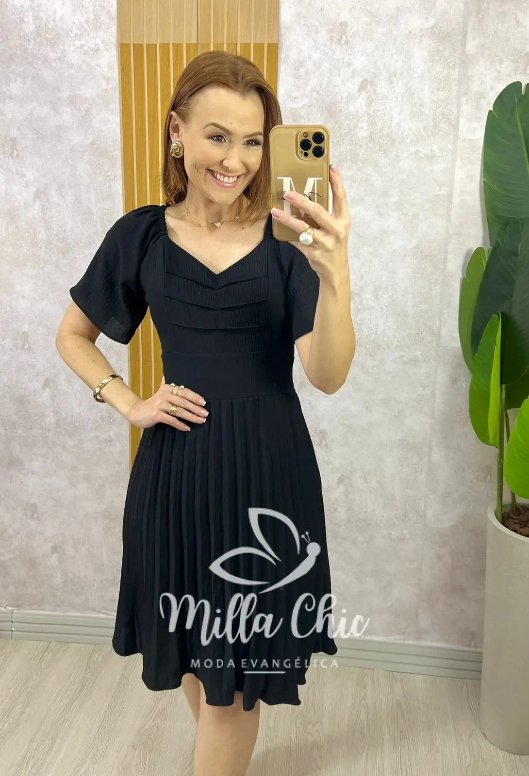 Vestido Alana é um clássico perfeito para todas as ocasiões, com aquele toque que transforma um momento simples em memórias incríveis! O vestido Alana é confeccionado em dunna . Um tecido que não amarrota é fresco e tem um caimento maravilhoso. Aquele clássico vestido que não cai de moda e vai te deixar linda e elegante em qualquer ocasião . A saia é toda plissada e no comprimento tampando o joelho. Ainda possui: forro, decote coração com leve nervuras e