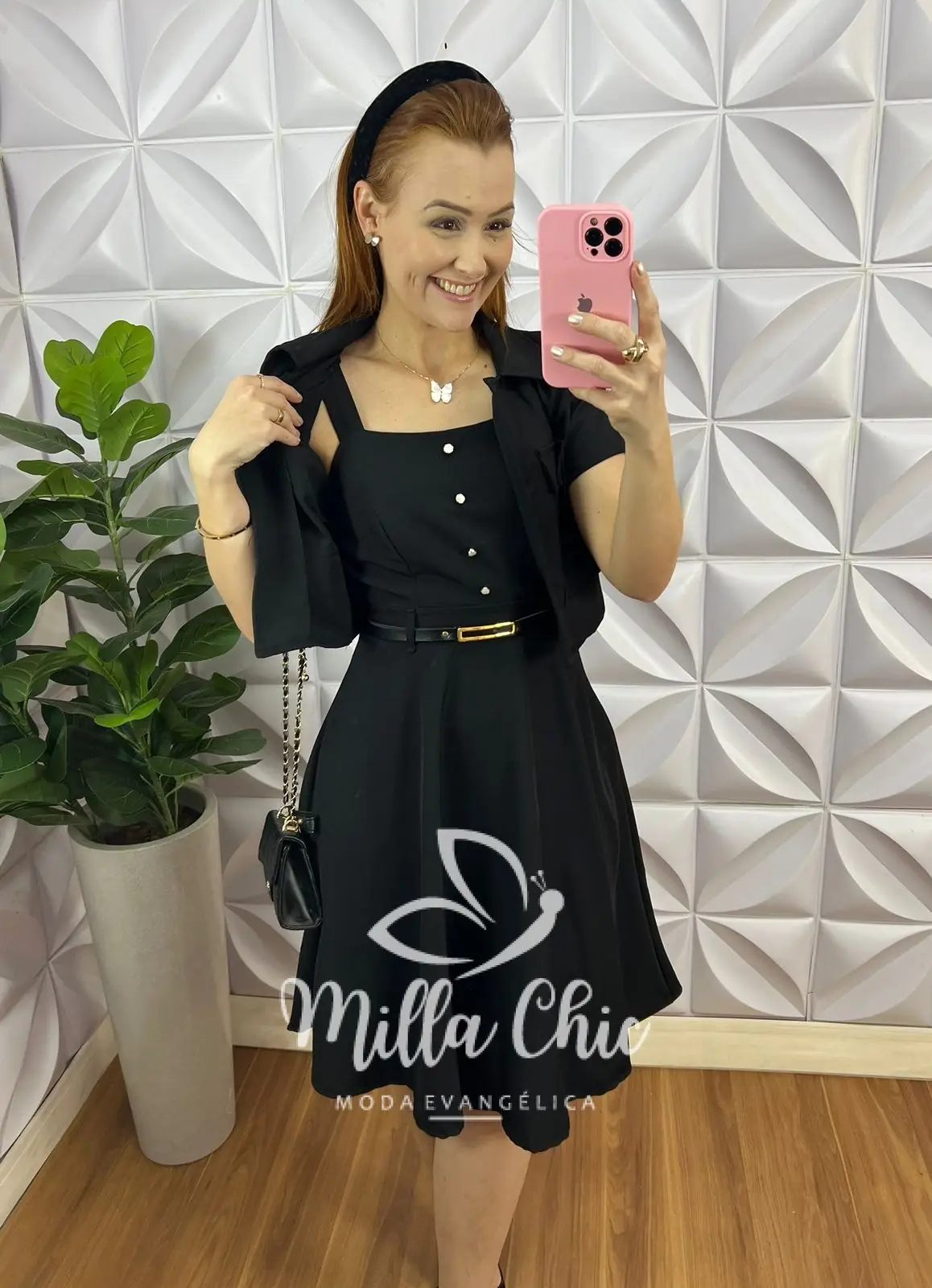 Vestido Alfaiataria Com Casaco Ate o Joelho Beatriz – Preto